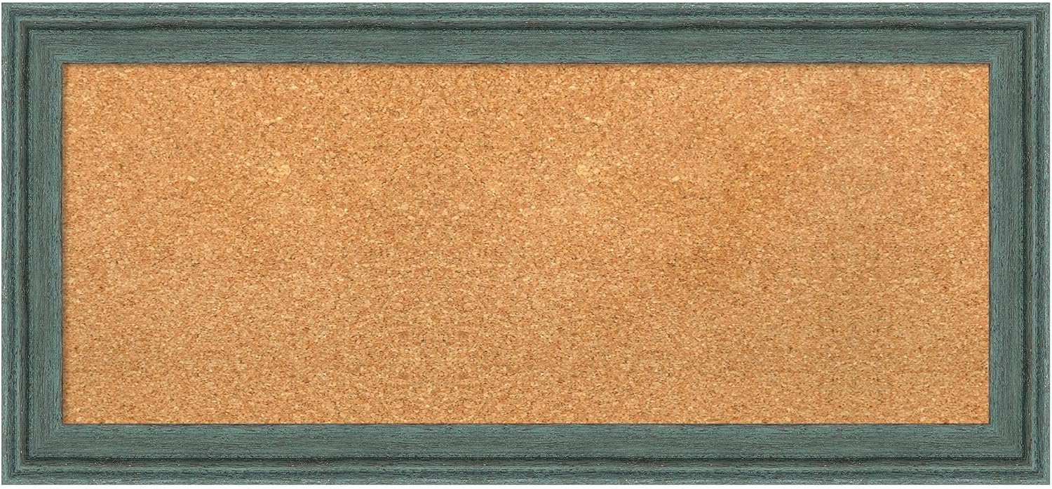 Amanti Art Natural Cork Board for Wall, 15x33 Vision Board with Blue Wood Frame, Medium Corkboard Office Decor for Home Organization, Rustic Farmhouse Corkboard Pinboard to display items for home