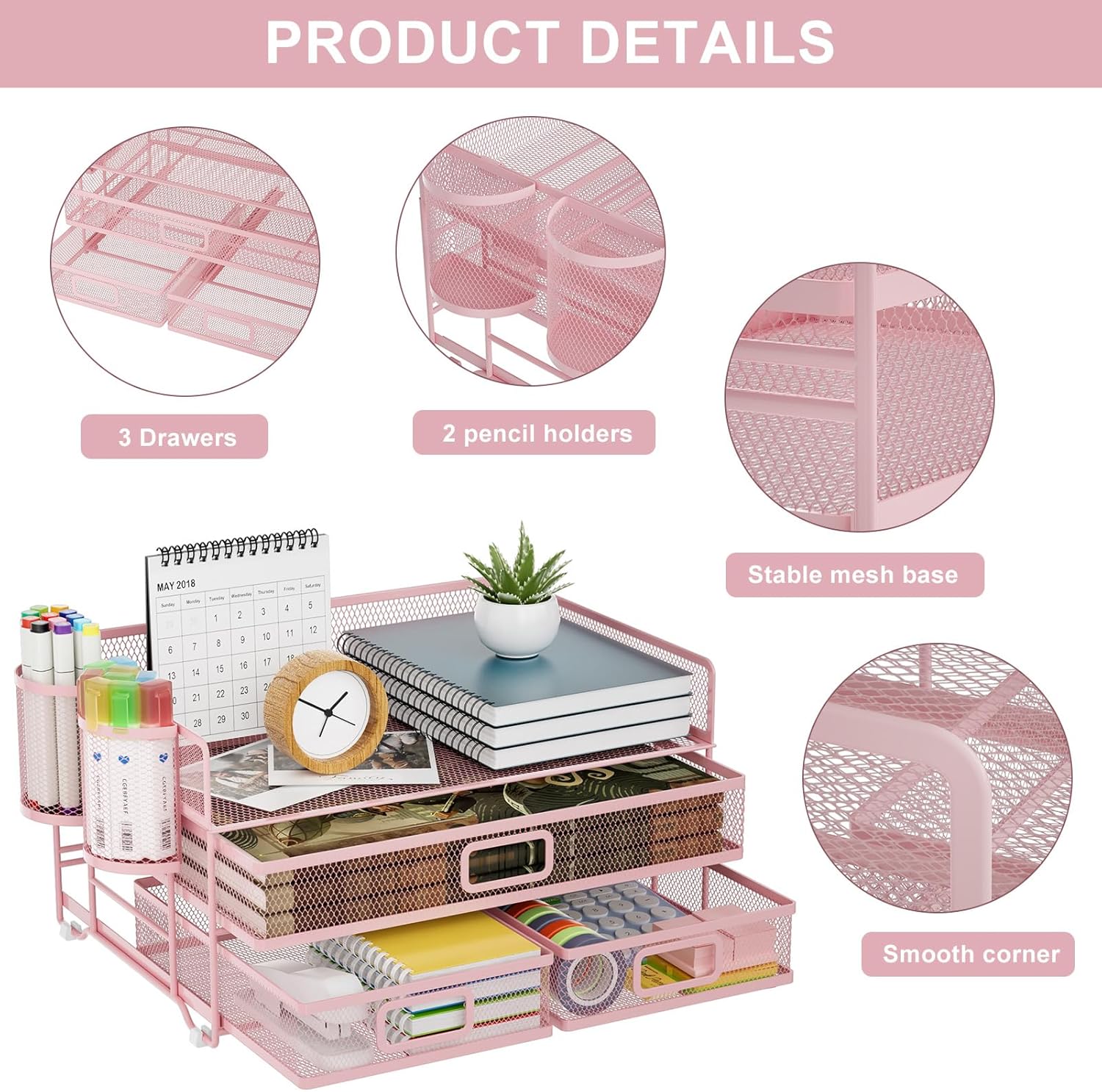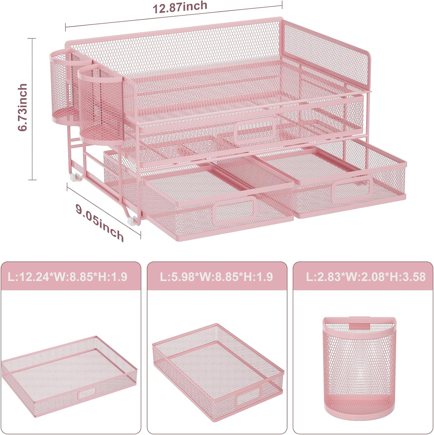 - 【Convenient Personal Storage】Compared with other mesh desktop organizer. The Multi-drawer design can help you store some important papers, whether it is personal letters or personal information can provide you with a certain privacy protection space.