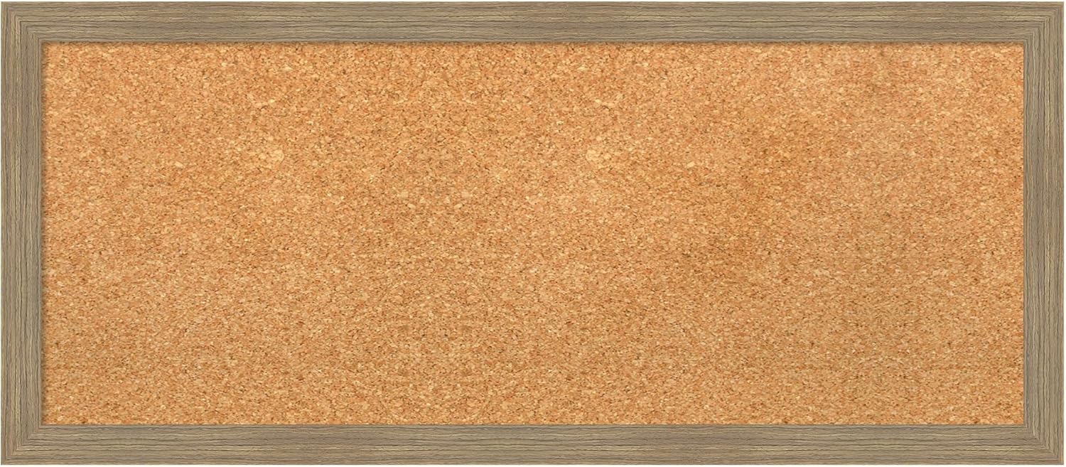 Amanti Art Natural Cork Board for Wall, 14x32 Vision Board with Brown Wood Frame, Medium Corkboard Office Decor for Home Organization, Casual Corkboard Pinboard to display items for home organization