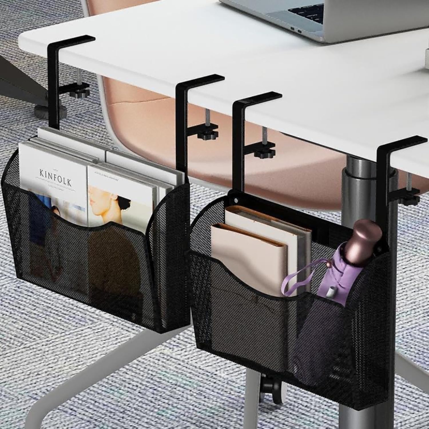 Under Desk Drawer, Desk Side Storage, Hanging Desks Organizer, Clamp On Mesh Metal Desks Organizer for Office and Home (Black)