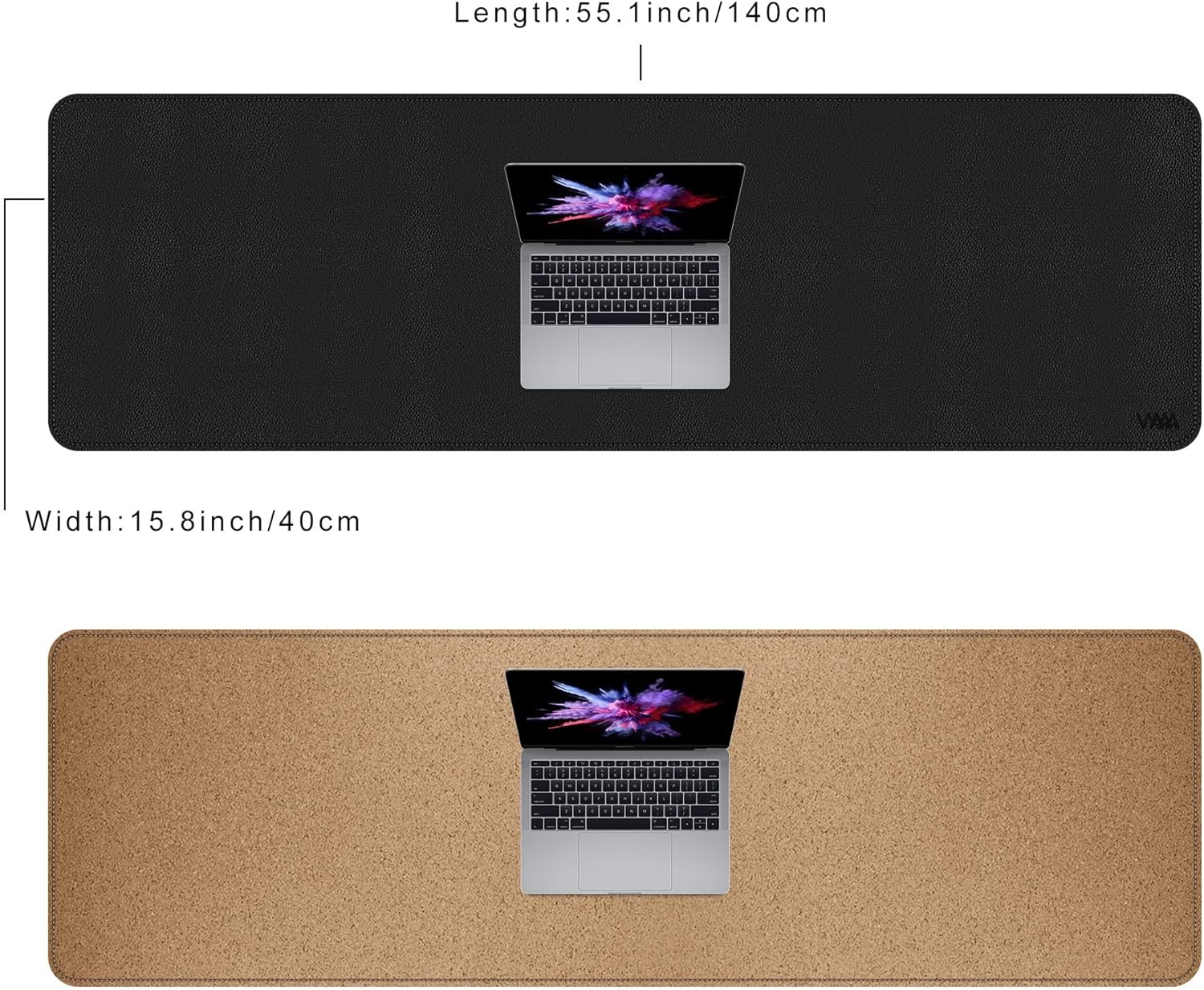 Vyaaa Cork & Leather Desk Mat, 55" x 15.7" Dual Sided Leather Desk Pad, Waterproof Extra Large Desk Mat, Large Mouse Pad,Desk Mats on top of Desks for Home or Office (Black)
