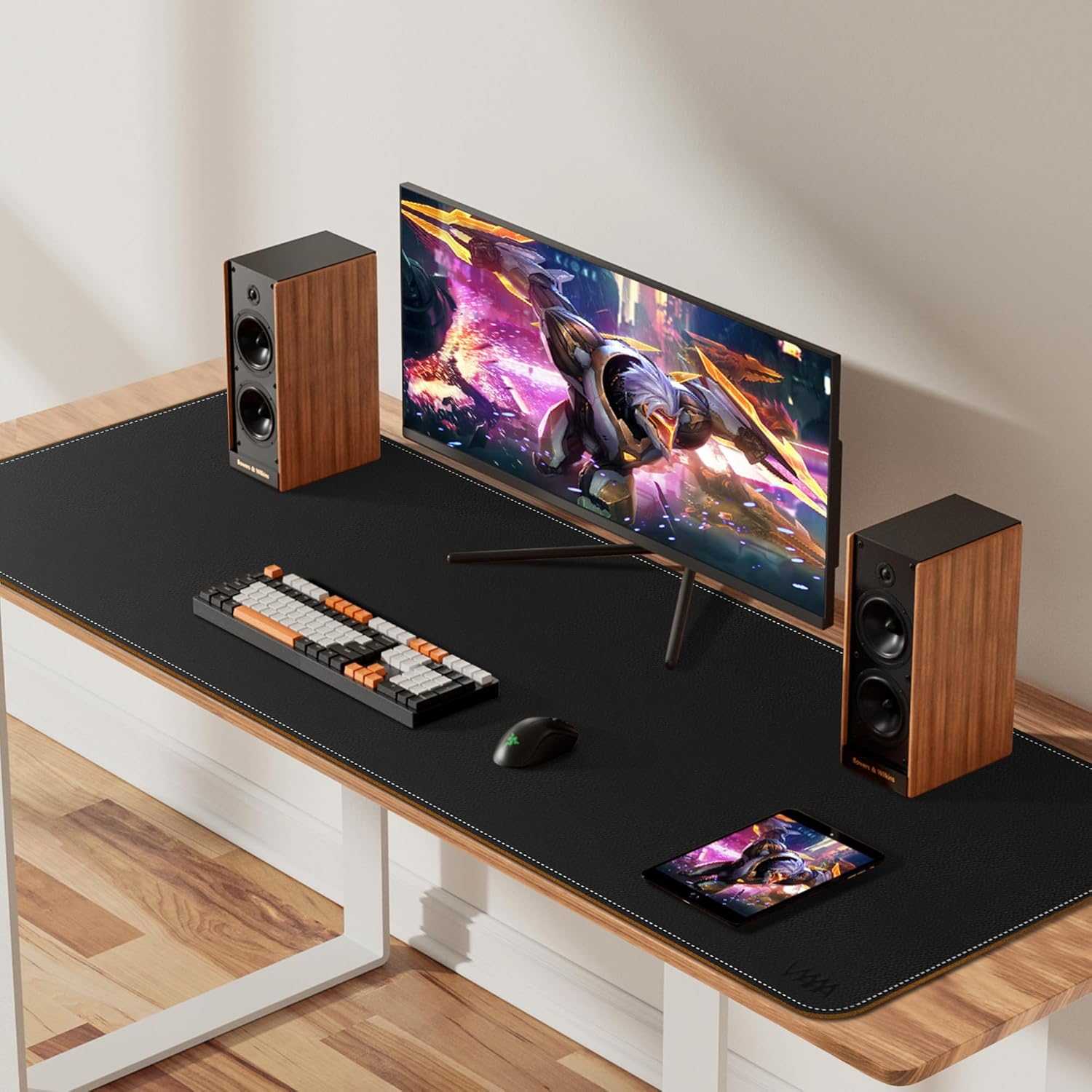 - Dual-Sided Leather: Black PU leather desk pad both sides can be used. The 40cm wide desk mat has a smooth surface and is perfect for mouse use. Leather desk pad provide soft cushioning to reduce wrist and elbow stress while working.