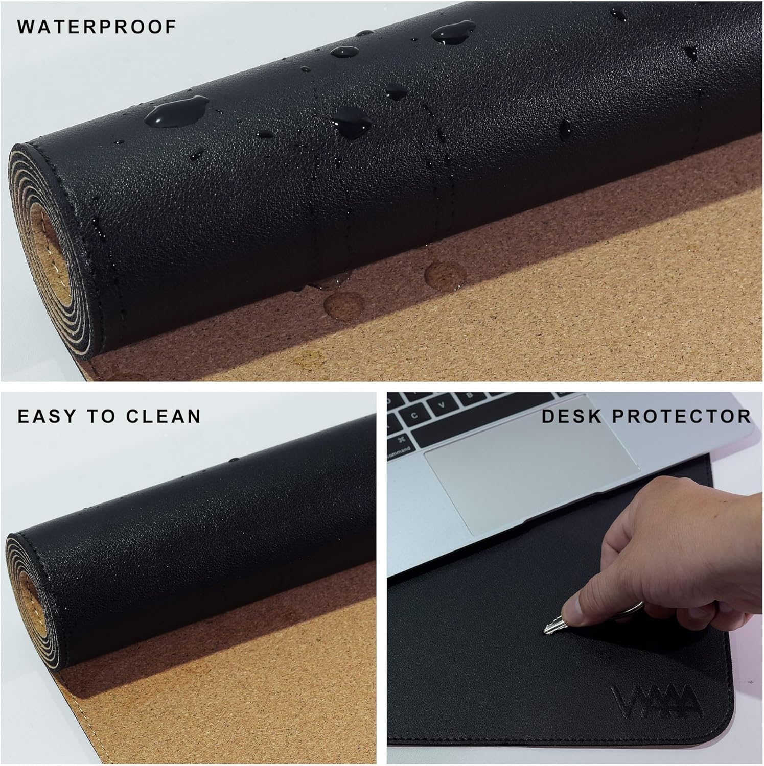 Vyaaa Cork & Leather Desk Mat, 47.2" x 15.7" Dual Sided Leather Desk Pad, Large Mouse Pad ,Waterproof Extra Large Desk Mat, Desk Mats on top of Desks for Home or Office (Black)