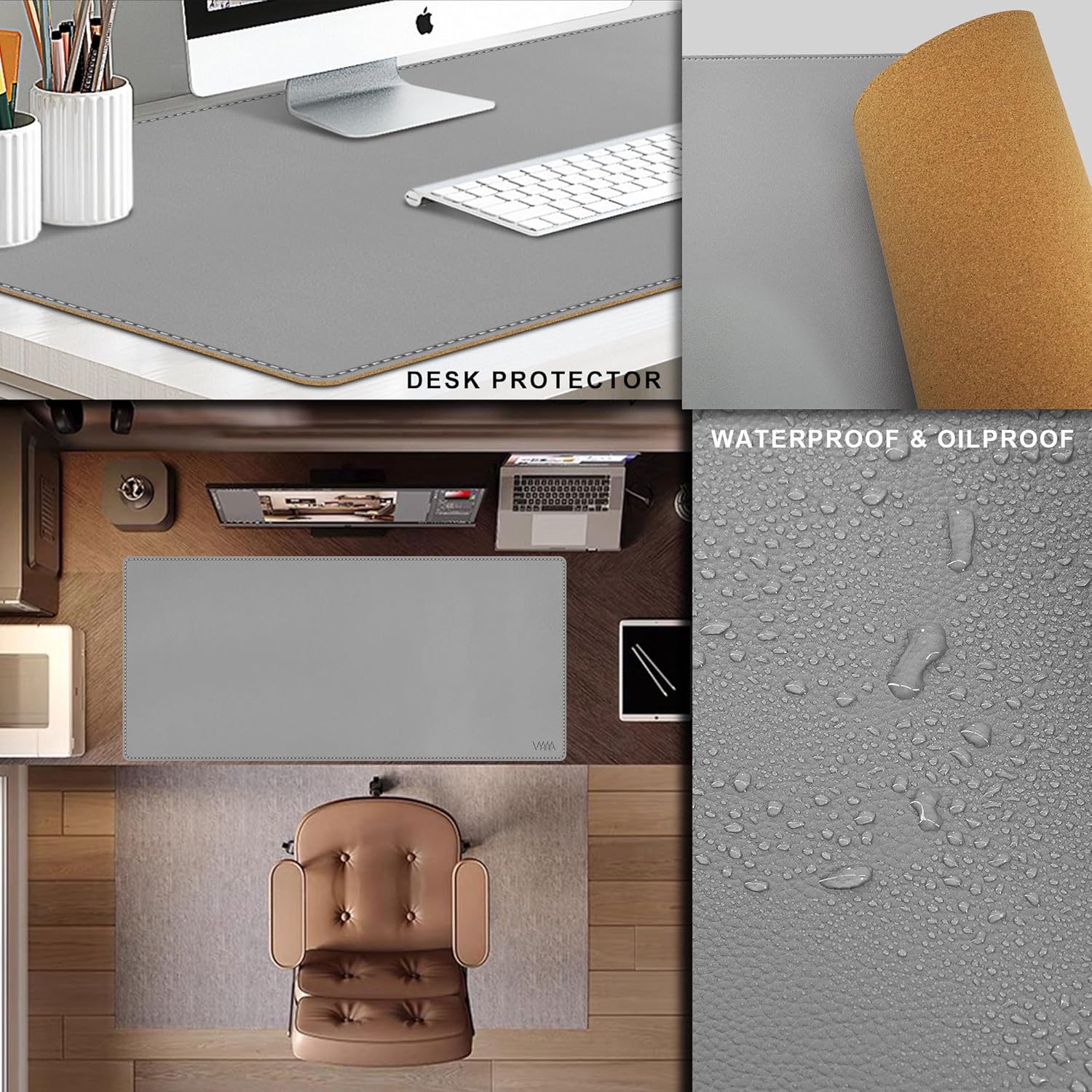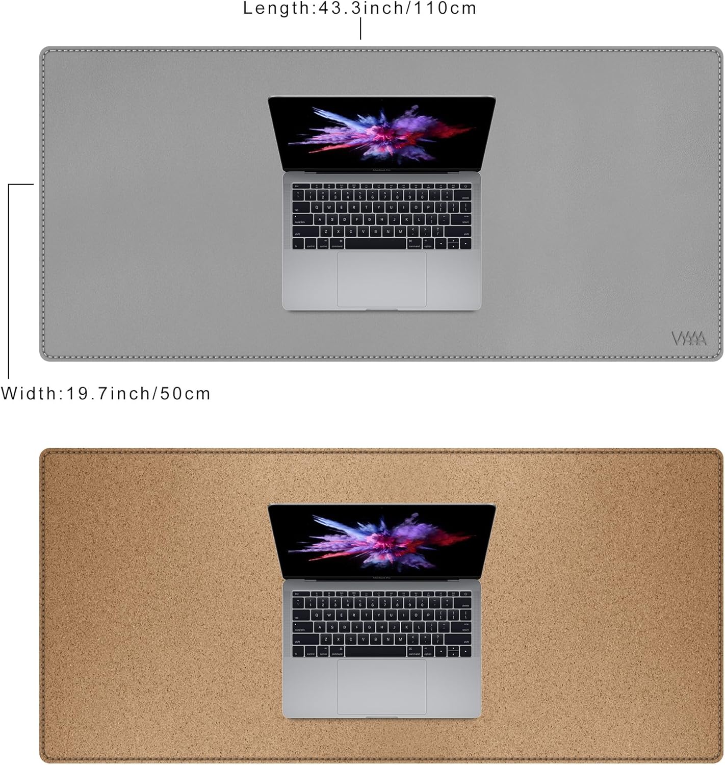 Vyaaa Cork & Leather Desk Mat, 43.3“ x 19.7” Dual Sided Leather Desk Pad, Waterproof Extra Large Desk Mat, Desk Mats on top of Desks for Home or Office (Grey)