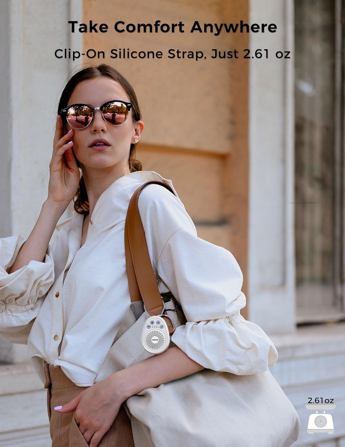 - Portable Sound Machine for Travel: Weighs only 2.61 oz; fits easily into a pocket or bag; silicone loop easily attaches to stroller, backpack, or nightstand; compact and portable for naps, travel, or office use