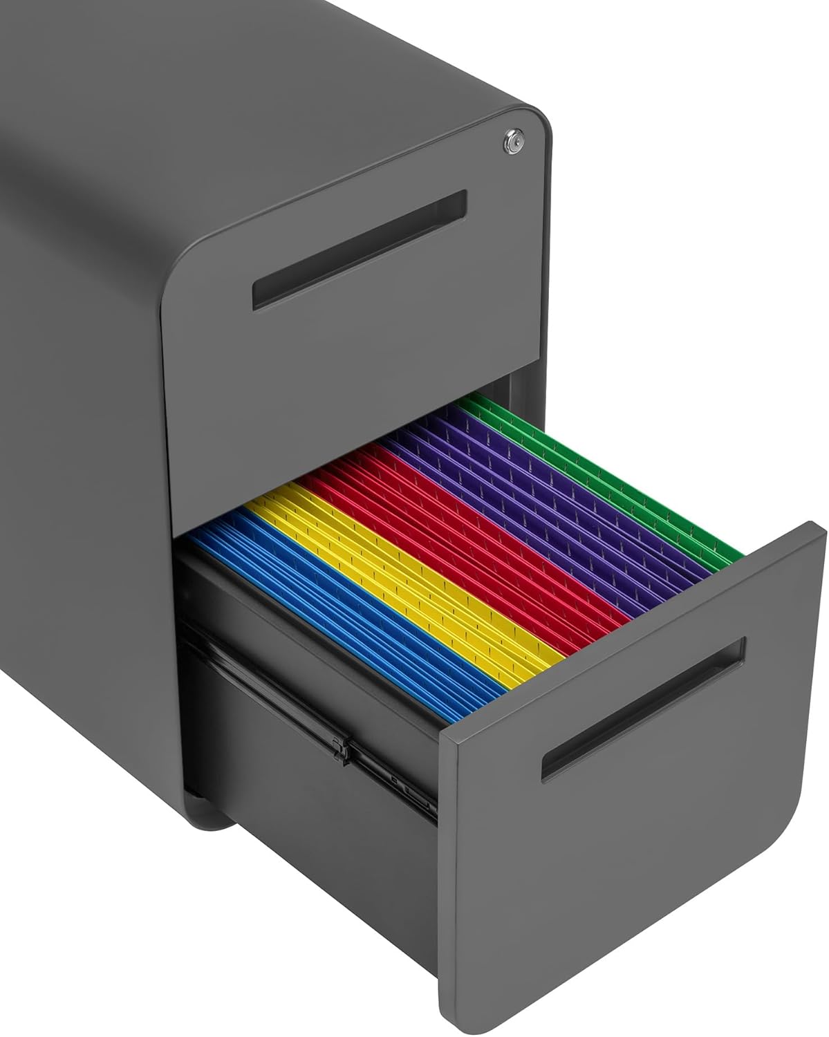 Laura Davidson Furniture Stockpile 2 Drawer Mobile File Cabinet with Lock - Under Desk Metal Filing Cabinet, Legal/Letter File Folders, Wheels and Stationary Feet, Pre-Assembled, Dark Grey