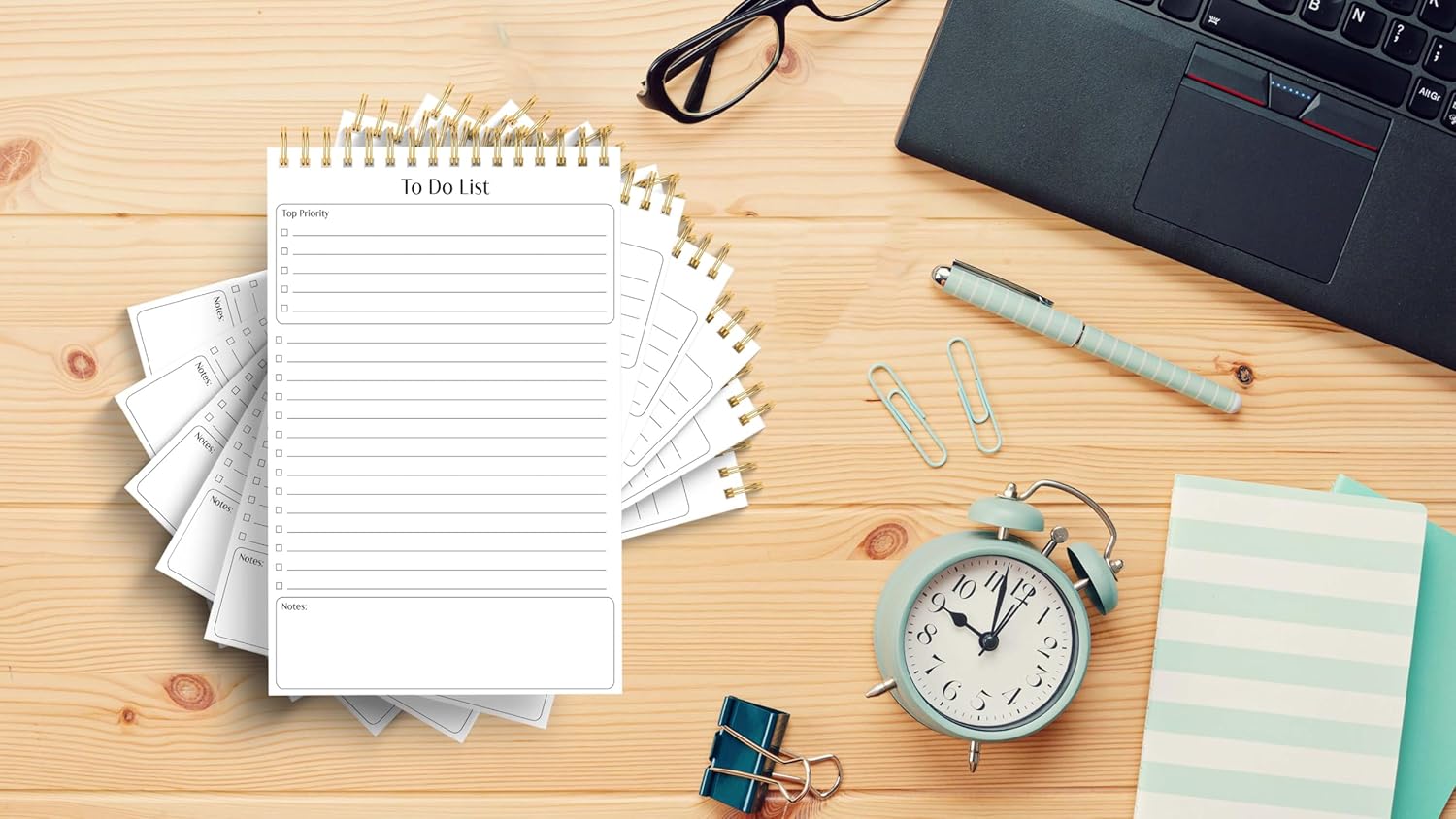 - DOUBLE-WIRE SPIRAL BINDING - Tear off sheets as needed or keep them intact to be able to look back on your prior tasks. Whether you're at your desk, in a meeting, or on the go, your notepad is ready for you to use as you see fit.