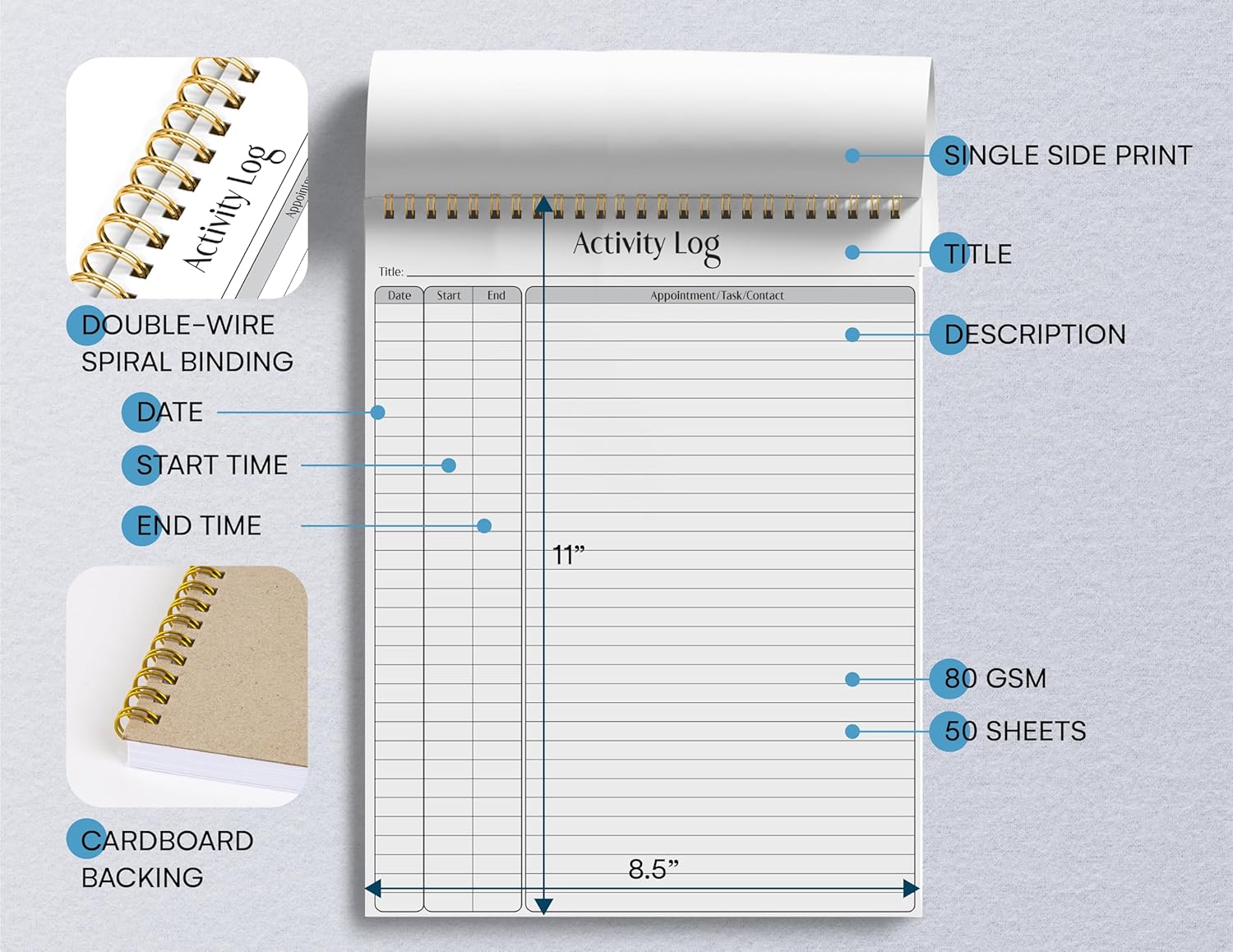 - 8.5" X 11": LETTER SIZE - With ample space for jotting down your activities/tasks, projects and deliverables, this notepad ensures you never miss a beat. The larger size offers room to log all your work.