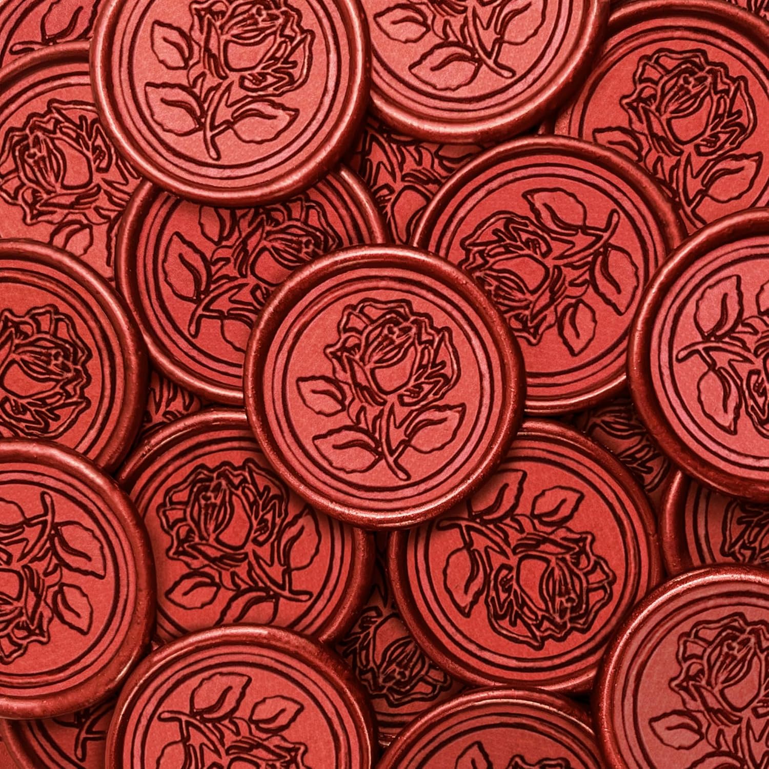 - PACKAGE CONTENT:You will get 50pcs Rose Style , wax seal sticker made by pure hand, the wax seal sticker is 1.18 inches/30 mm in diameter, each Rose wax seal has almost the same size of adhesive on the back of the sticker, perfect for mailing, you don't need to worry about the strength of the adhesive at all.