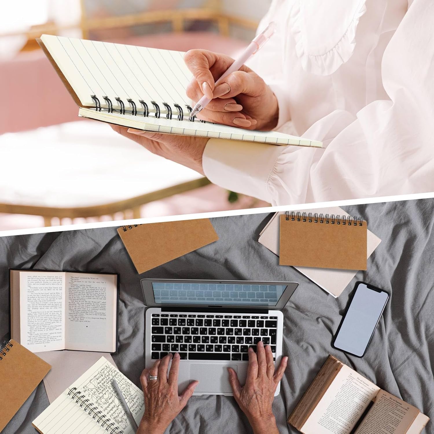 - Nice Workmanship: this spiral journal notepad is made of sturdy kraft paper cover with 80 grams of thickened paper inside, allowing you to use on both sides and the other side without inking; This notebook is enough for you to take notes, jot down ideas, record important work items or travel thoughts, etc.; It is the ideal notepad for work, study or life