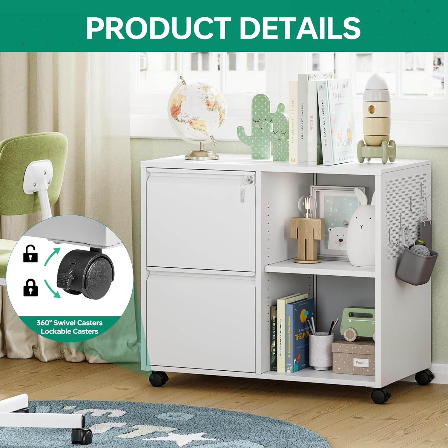 - ăMultifunctional Filing CabinetăLateral filing cabinet with open storage spaces, organization and storage drawers,holds printer stand and office craft storage,side hole panel design is beautiful and can hang items,modern delicate appearance ornamental to your office & home.
