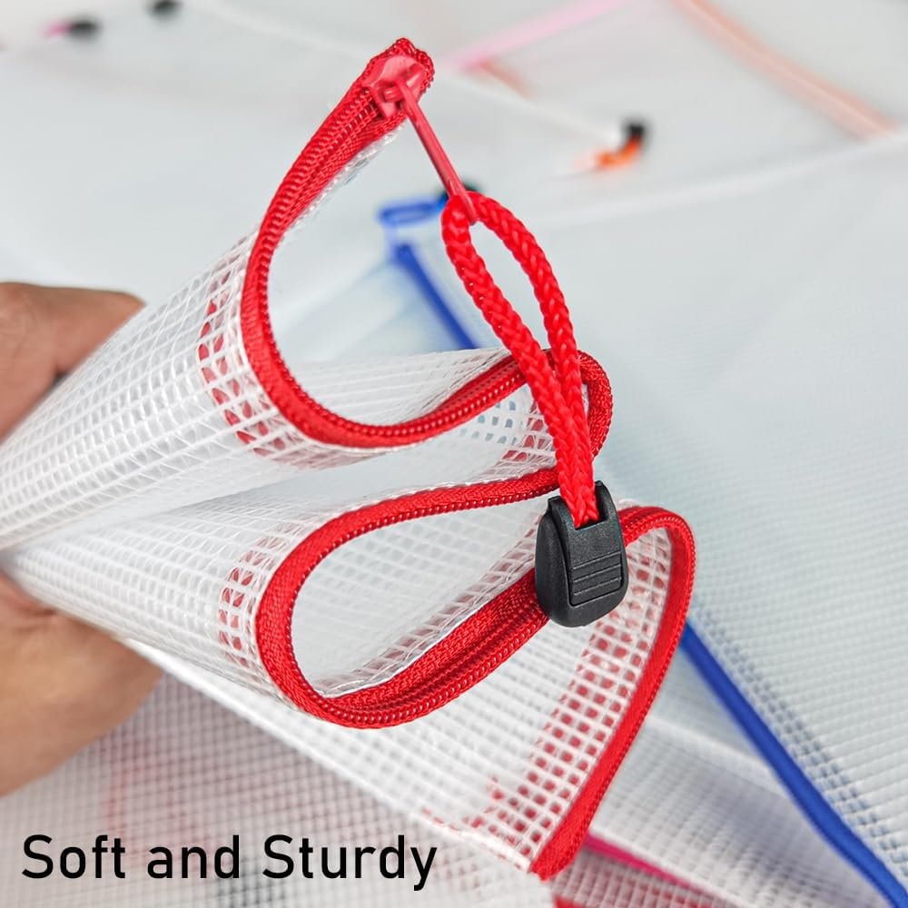 D-KINGCHY 24Pcs Zipper Storage Bags, Plastic Mesh Zippered Pouch for Organization, Waterproof Versatile Bags for Office Supplies School Travel