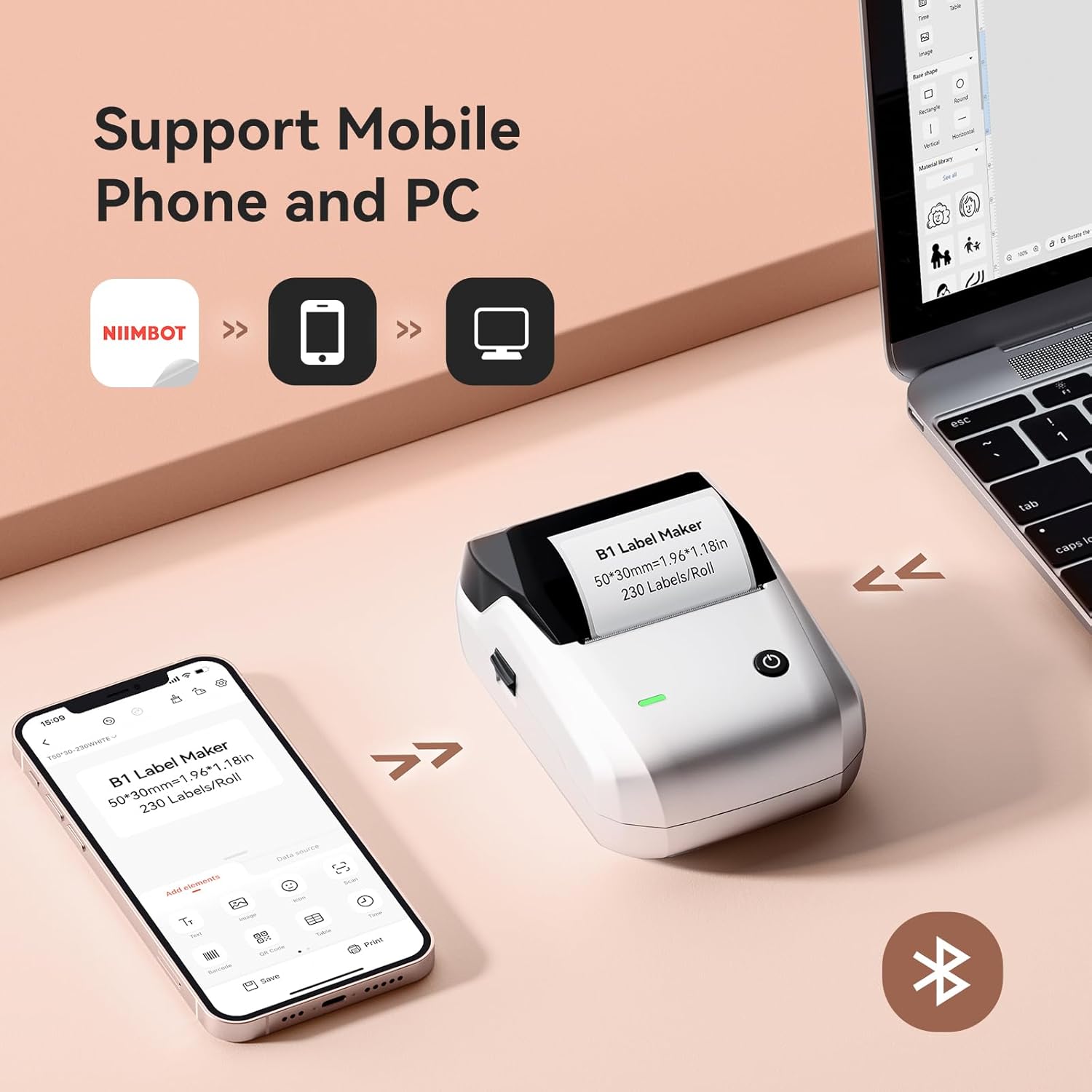 - Multi-scene Use: The B1 Bluetooth label maker is widely used, you can make labels anytime, anywhere, such as in small businesses, coffee shops, bakeries, retail, food industry, jewelry, etc. Price Label, address, jars, DIY, barcode, date, ingredients, and product labeling. It is for various labeling needs and brings convenience to work and life