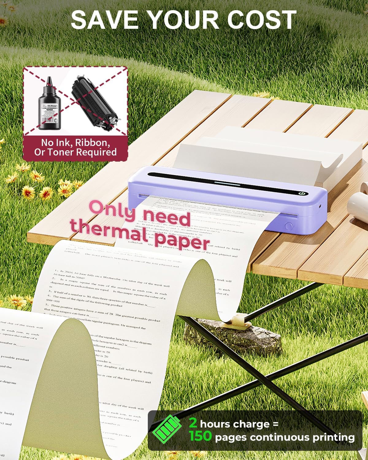 - SAVE CASH & TIME: COLORWING inkless printer! No ink, ribbon, toner - $0 cost wonder! Just grab thermal paper. Cleaner, handier, no health risks! Small slim printer, big capacity. 2-hour charge = 150 sheets non-stop!
