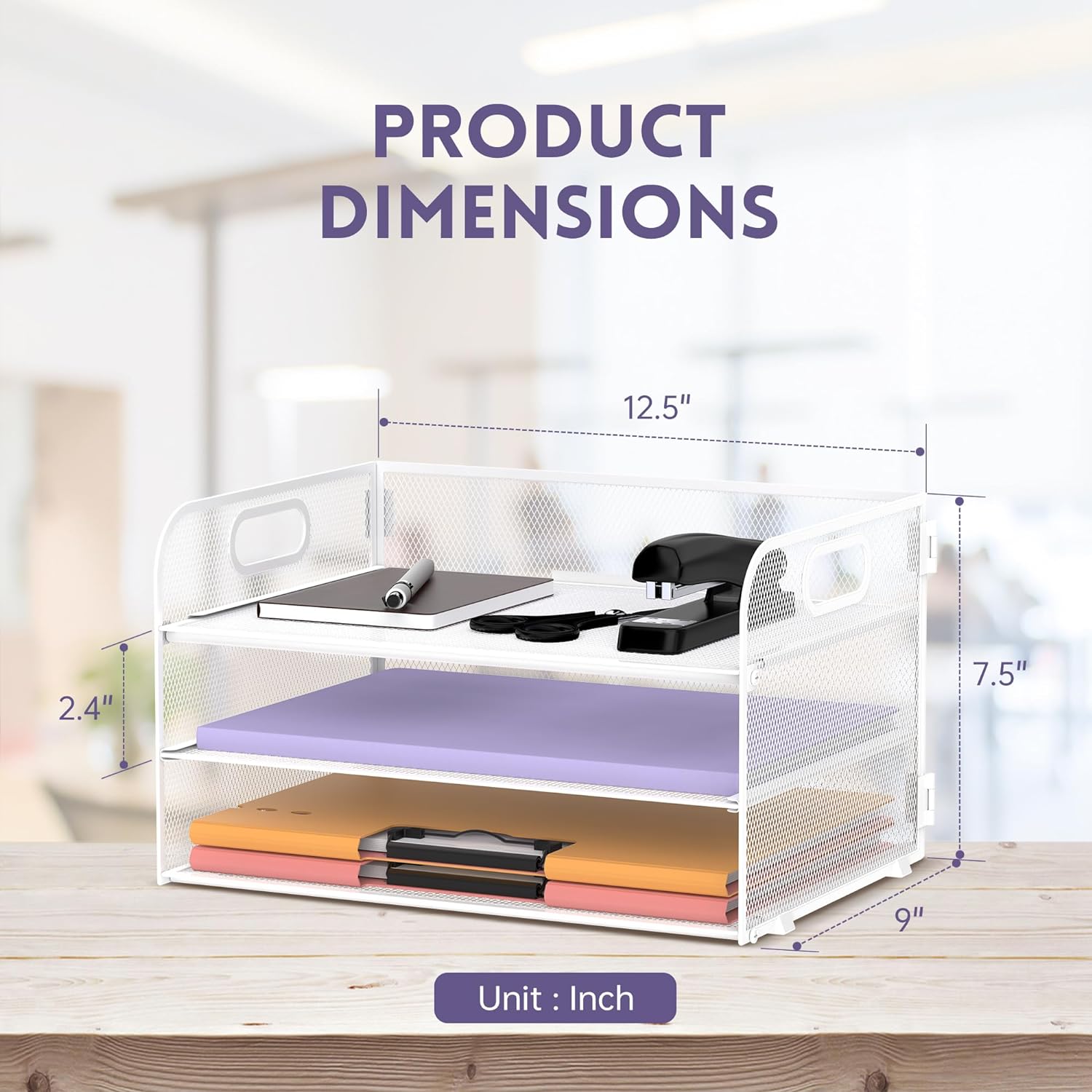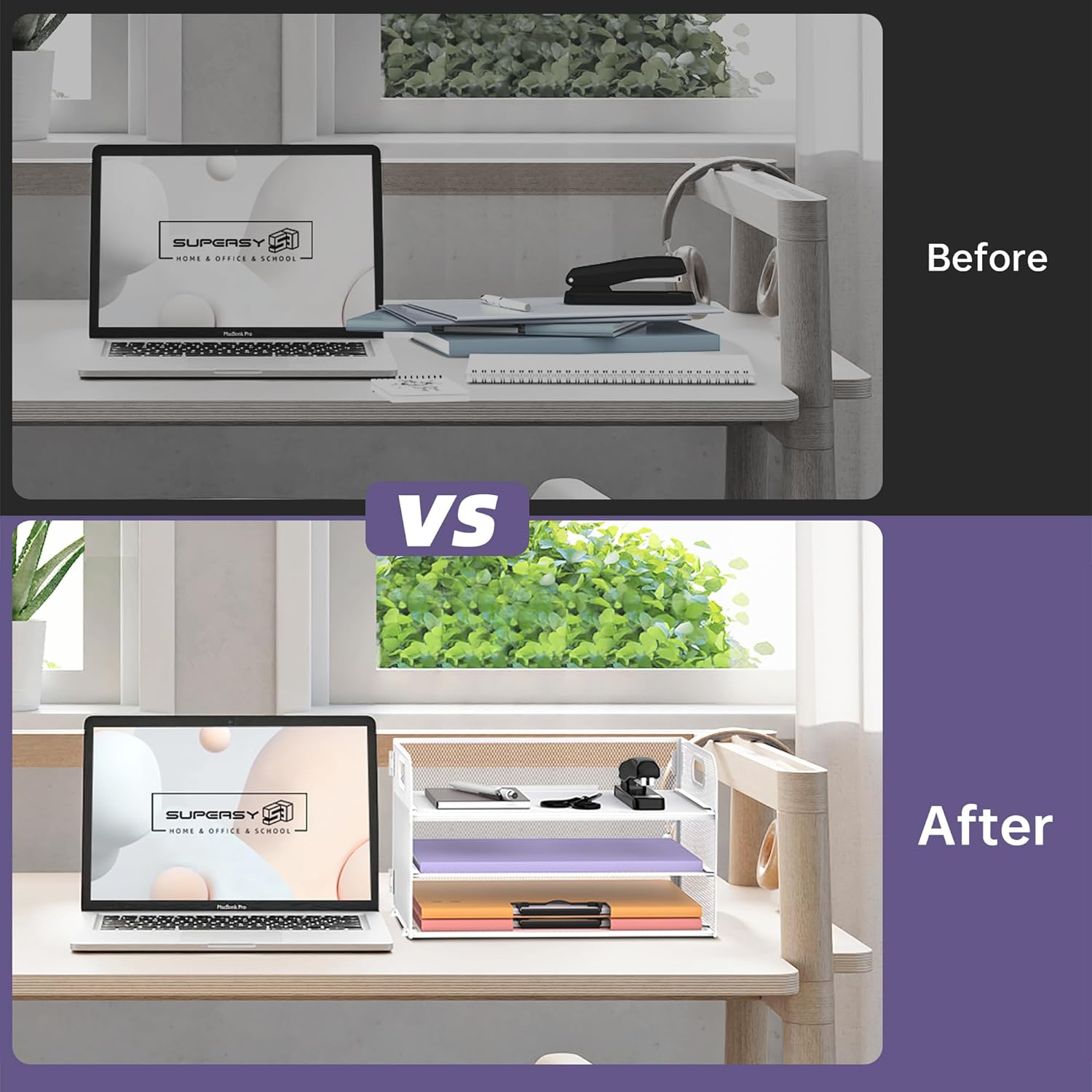 - [3 Tier Large Capacity] Upgraded SUPEASY desk organizer is 3 tier paper tray organizer. This paper organizer has 3 detachable trays which is perfect for holding letters, A4 paper, books, bills, magazines, mails, folders, notebooks and so on. The desk organizers can fully take advantage of your vertical space and keep your desktop clear and tidy.