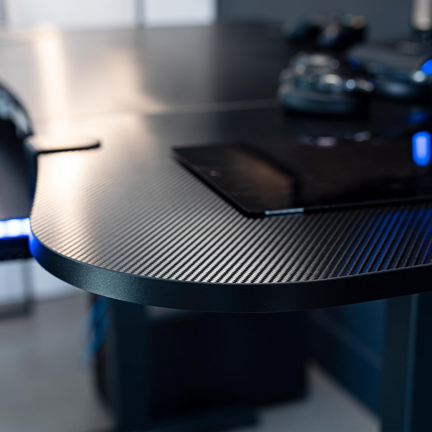 - Carbon Fiber 3-Piece 63" Top: The large table top measuring 63.1β x 31.5β (28β at center) offers plenty of room for a variety of monitor and laptop setups along with work projects and office supplies. Note: All 3 sections of the table top must be used
