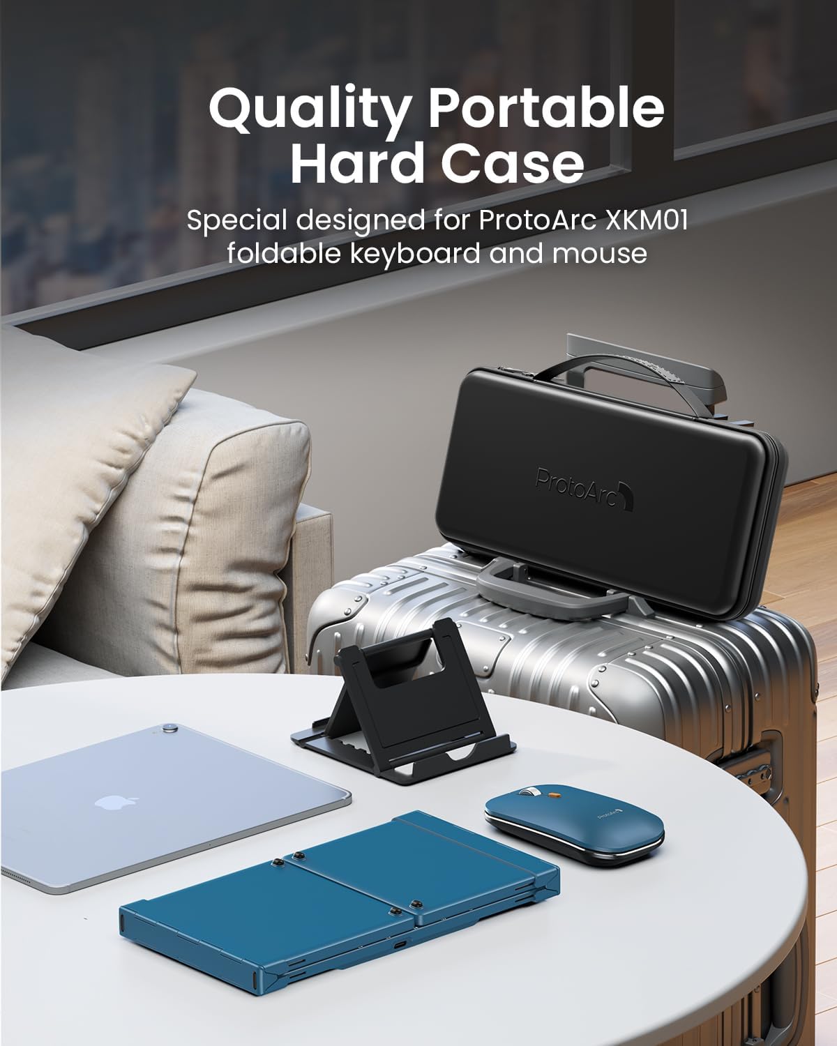 - Travel-Ready All-in-One Kit: Includes a carrying hard case (12 x 5.55 x 1.6 in) with a foldable stand for 4-11” iPads/tablets. Internal aluminum hinges survive 10,000+ folds, tougher for frequent trips. Unfold and work instantly, zero setup time