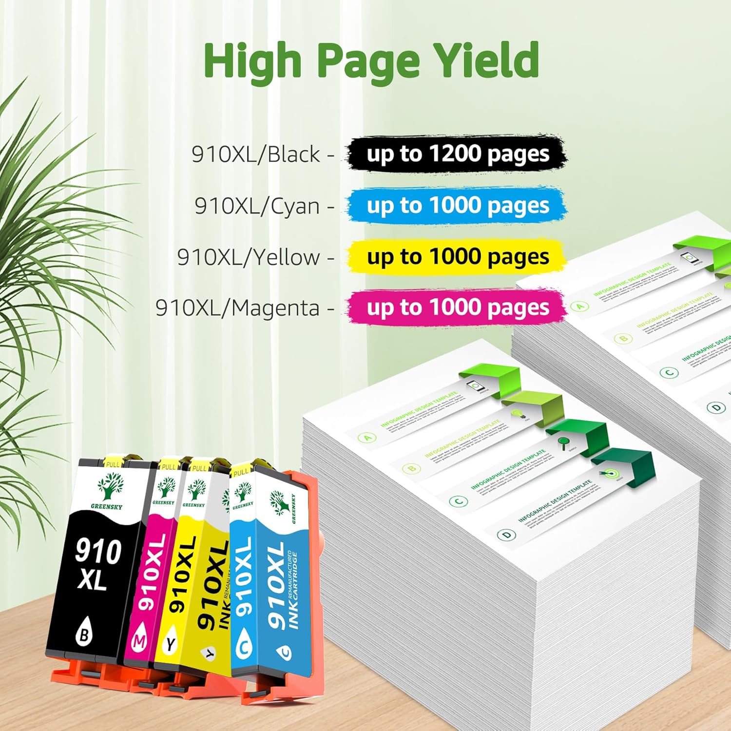 - Improve your printing experience with GREENSKY Remanufactured 910XL Ink Cartridges featuring cutting-edge chip technology designed for "H P+" printers