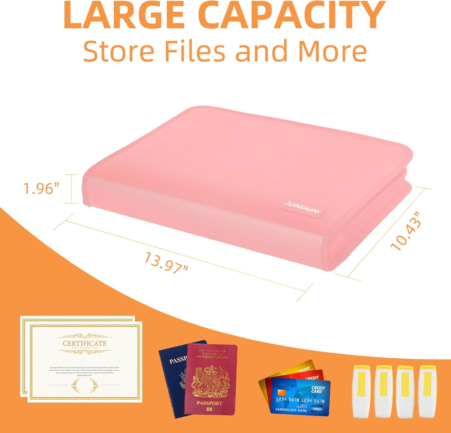 - UPGRADED DESIGN: Say goodbye to cluttered files and disorganization with JUNDUN's file organizer folders.Our unique design allows you to neatly store and classify letter/A4 files, receipts, cards, USB drives, pen, passports,and more.With our according file organizer,you only need one organizer to handle all your files,saving you time and money.Simplify your life and stay organized with our cost-effective solution