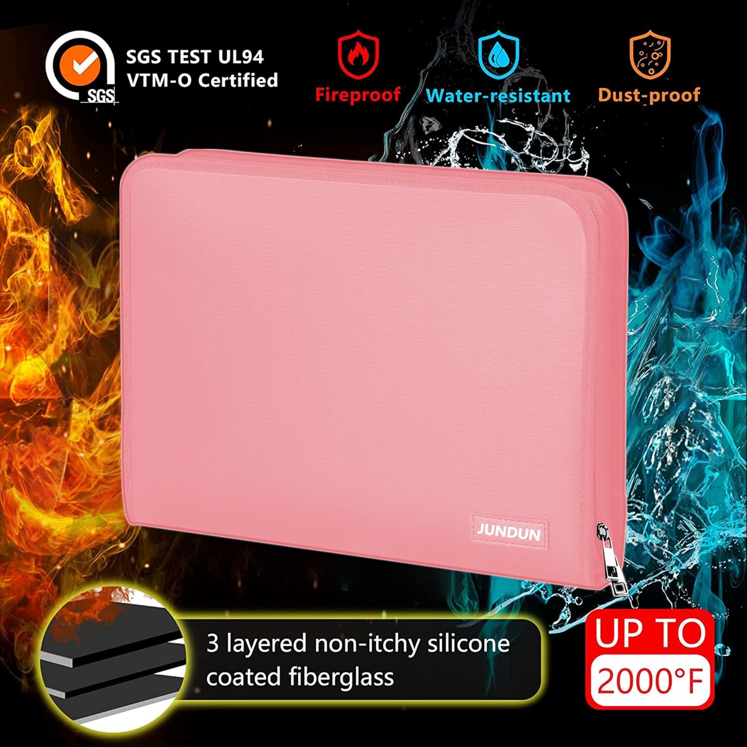 - HIGH-QUALITY MATERIALS: Protect your documents with our fireproof accordion file organizer.Made of double-layered,non-itchy,silicone-coated fiberglass,it can withstand up to 2000℉ and has passed the SGS Test (UL94 VTM-0 Certified). Highly water-resistant,it's the perfect solution for unexpected spills or accidents.Keep your files organized and easily accessible with our expanding file organizer.Invest in added protection today!