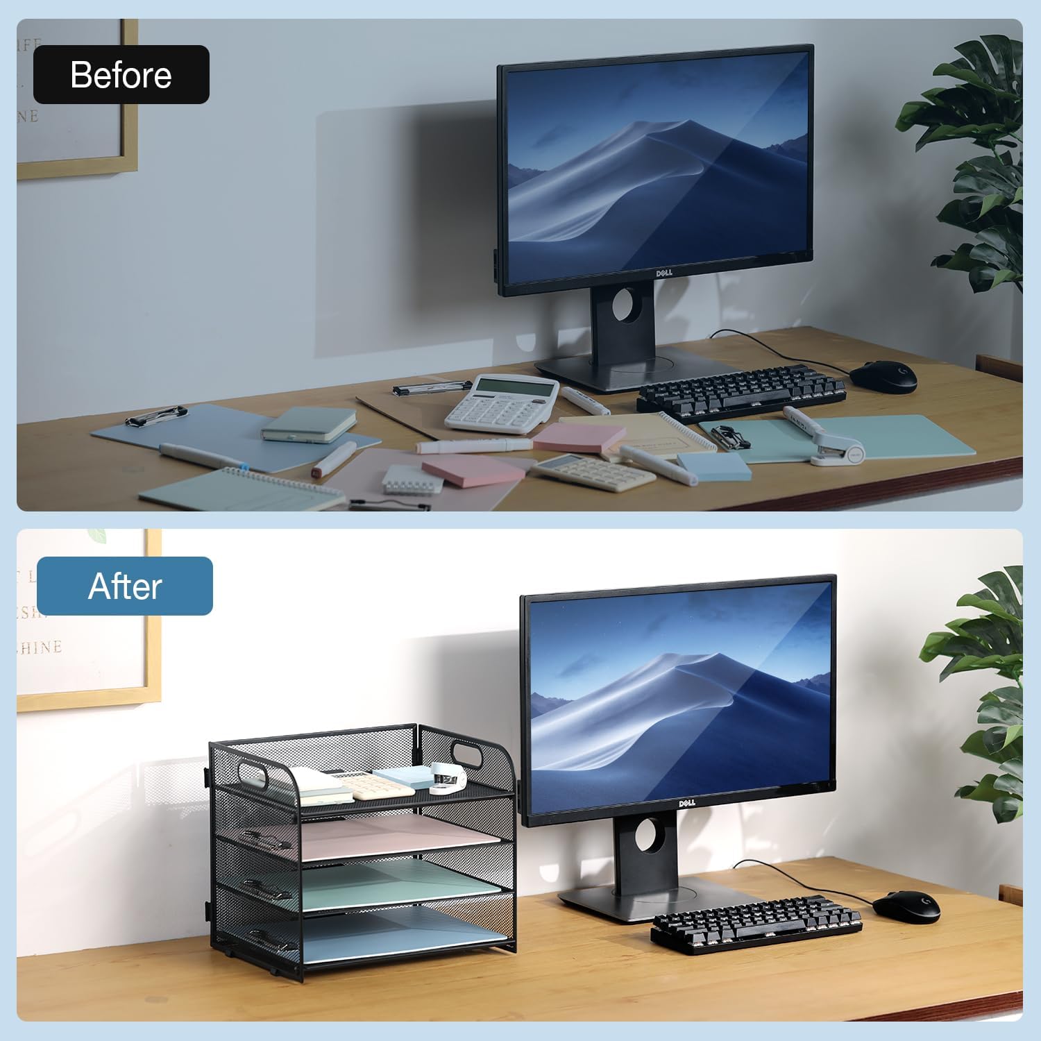 - 【4-Tier Partitioned Storage】With four tiers, this desk organizer provides ample storage space for all your A4/letter-sized documents, file holders, and other office supplies. Multiple tier with stackable trays allow for easy categorization and separation of items, maximize your work efficiency while keeping your desk tidy