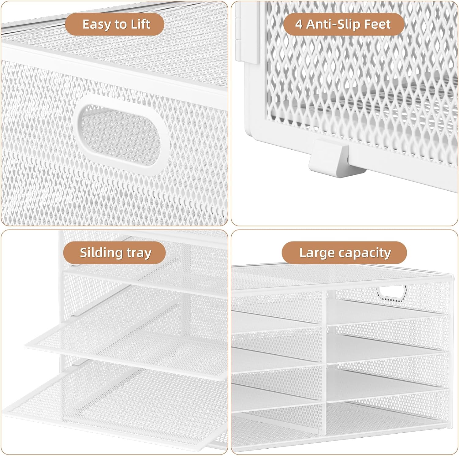 - 【High Quality】The mesh desk file organizer is made of lightweight durable metal mesh and reinforced with a solid steel frame that makes it have long-lasting strength and reliable performance