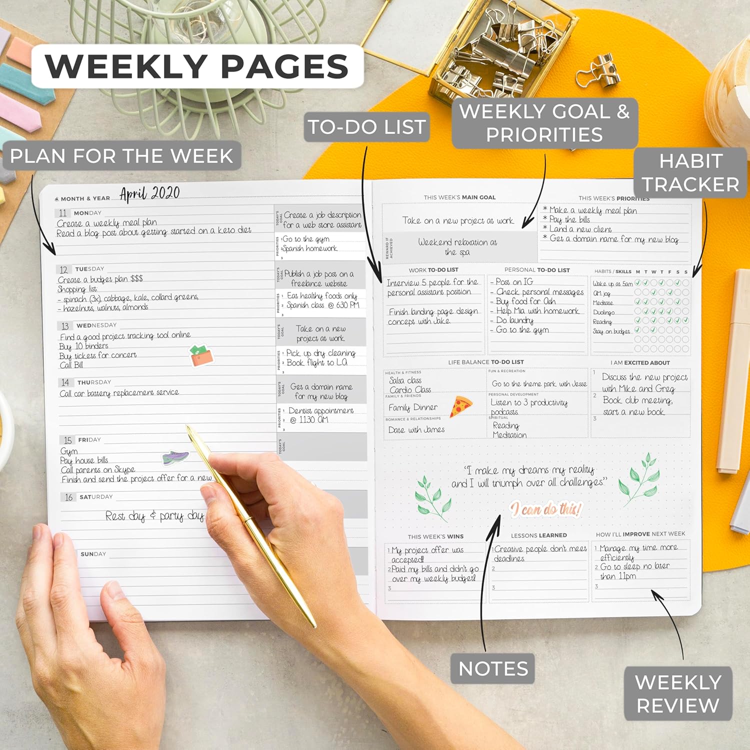 - FREE QUICK START GUIDE & STICKERS - This planner and organizer for women and men comes with a detailed step-by-step illustrated user guide and colorful planning stickers to ensure you make the most of using it.