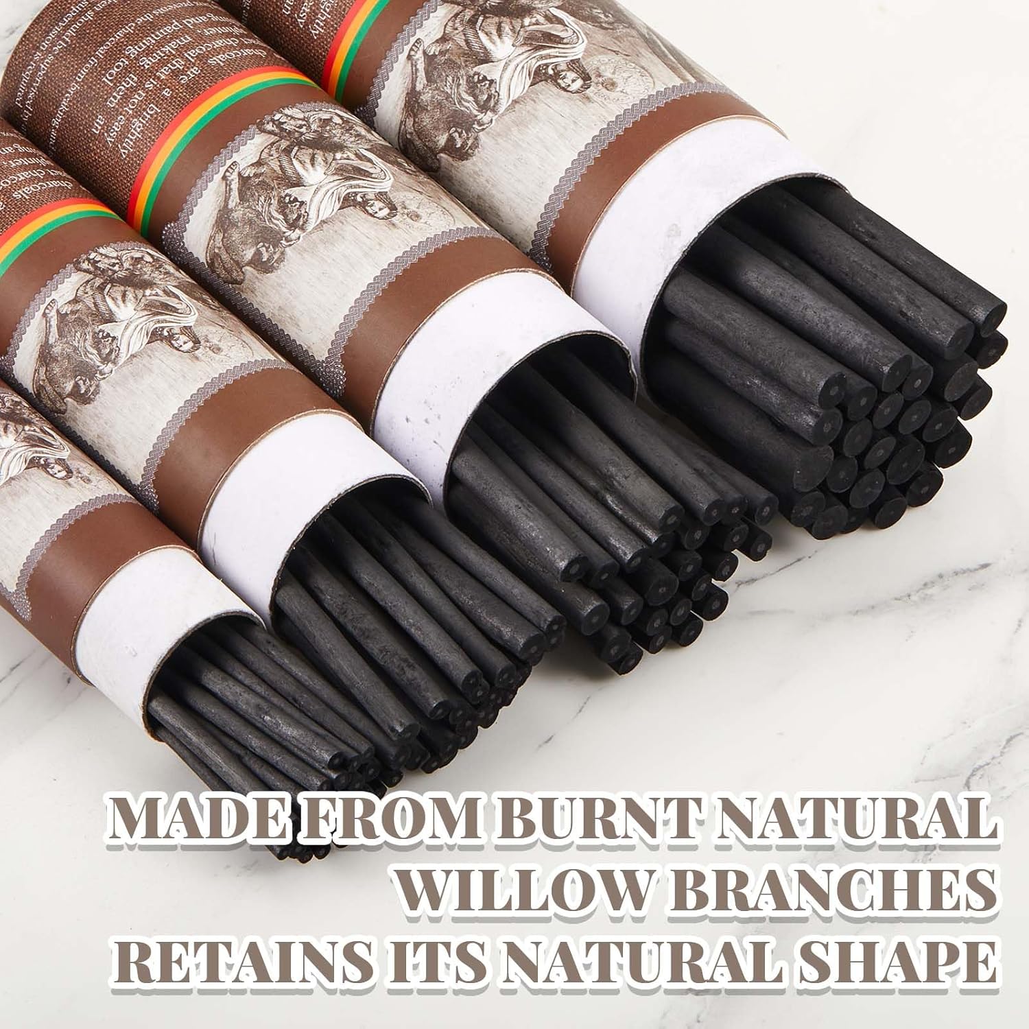 - Sturdy and Reliable Willow Charcoal: we use the paper tube packaging box and still provide the smooth and quality willow carbon bar; ; Willow is darker and more forgiving than vine, which can produce a range of tones, and willow breaks less than vine charcoal