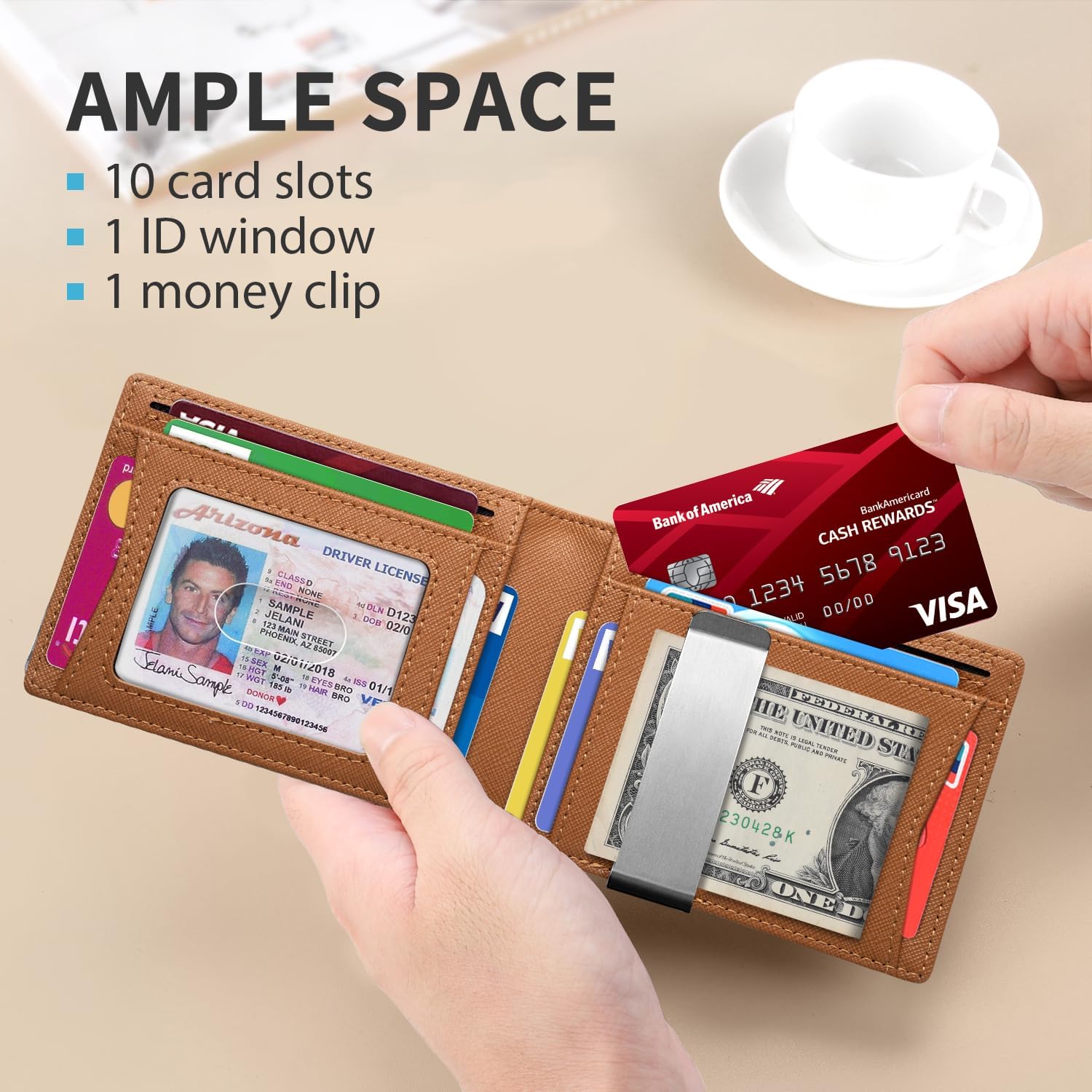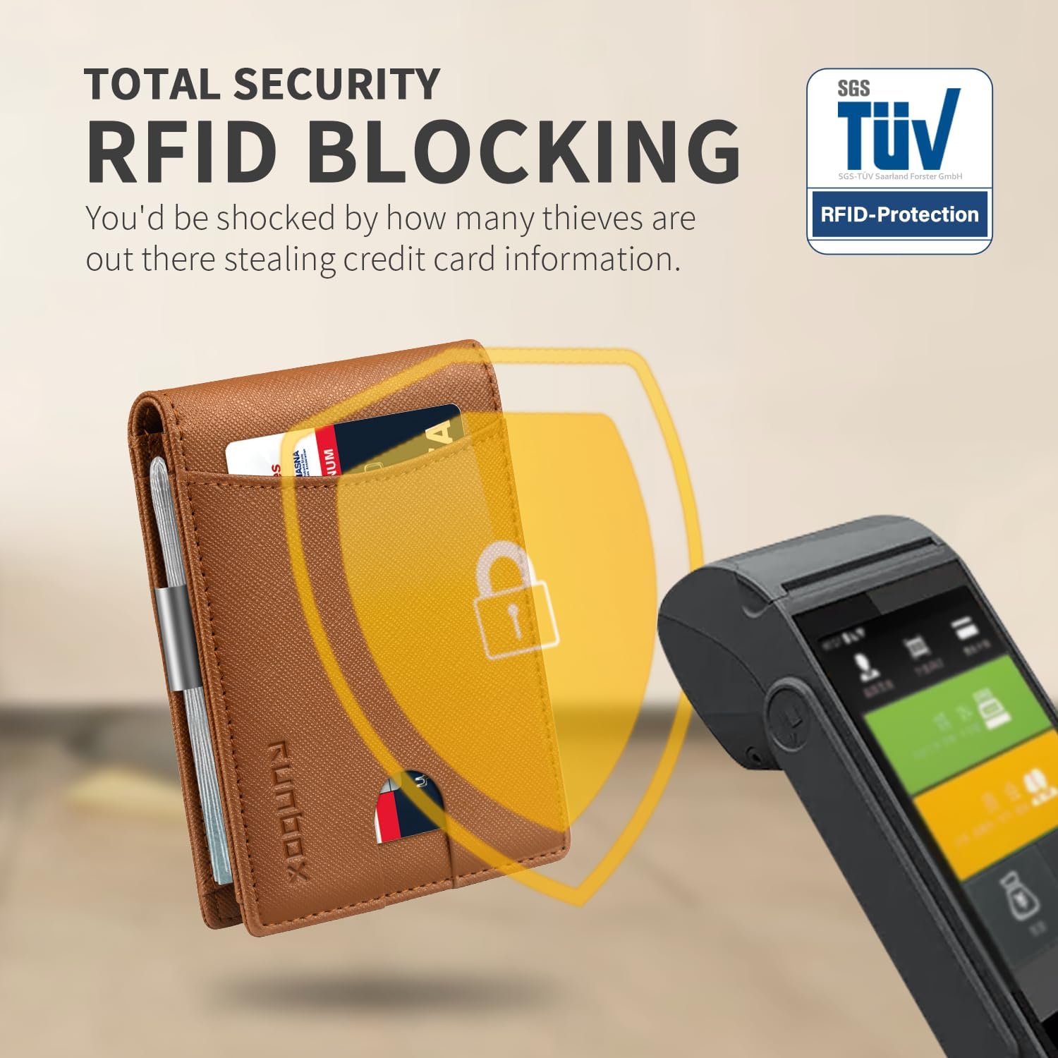 RUNBOX Money Clip Slim Wallets for Men RFID Blocking 11 Card Holder Minimalist Small Leather Bifold Men's Front Pocket Wallet Gift Box