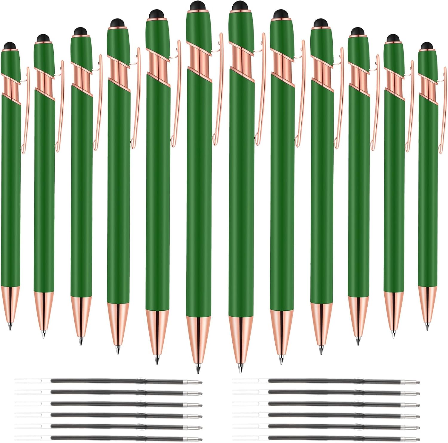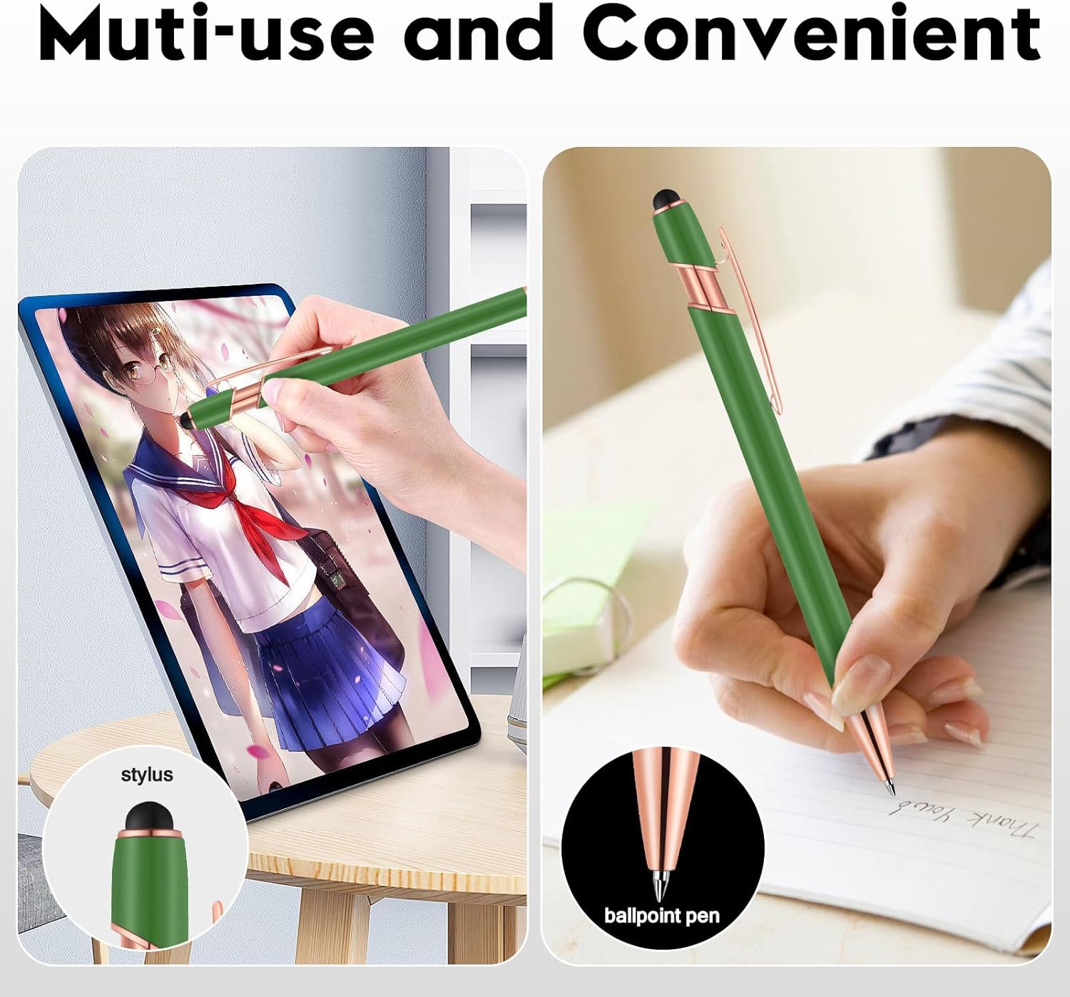 12 PCS 2 in 1 Stylus Ballpoint Pen with Stylus Tip, 1.0 mm Black Ink Metal Pen Stylus Pen for Touch Screens (Light Green)