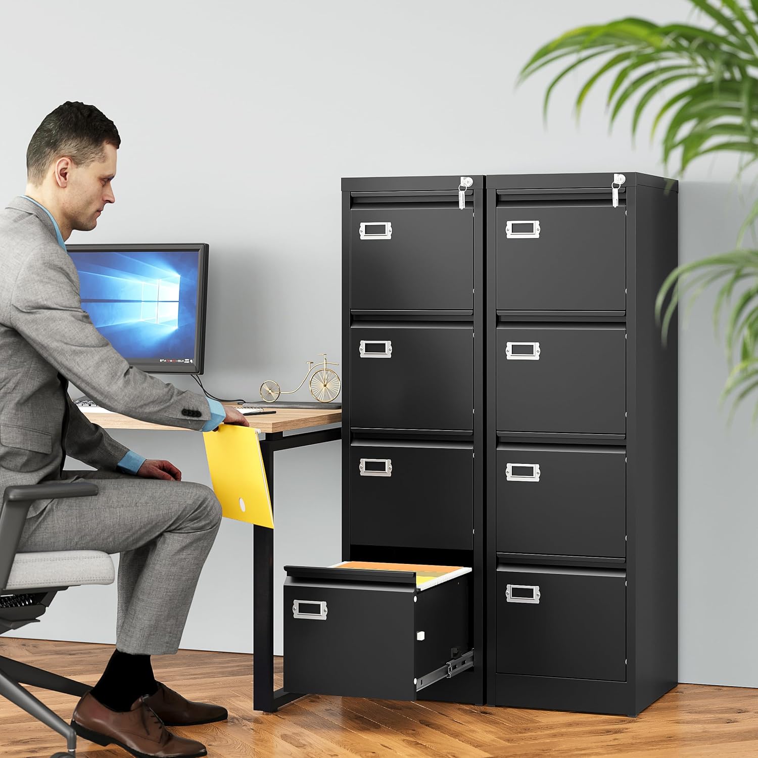 - SECURE STORAGE: 4 drawer filing cabinet with lock features a built-in lock system with keys to protect sensitive documents and valuables.Anti-tip interlock system allows only one drawer open at a time.Plus label holders for easy file identification.