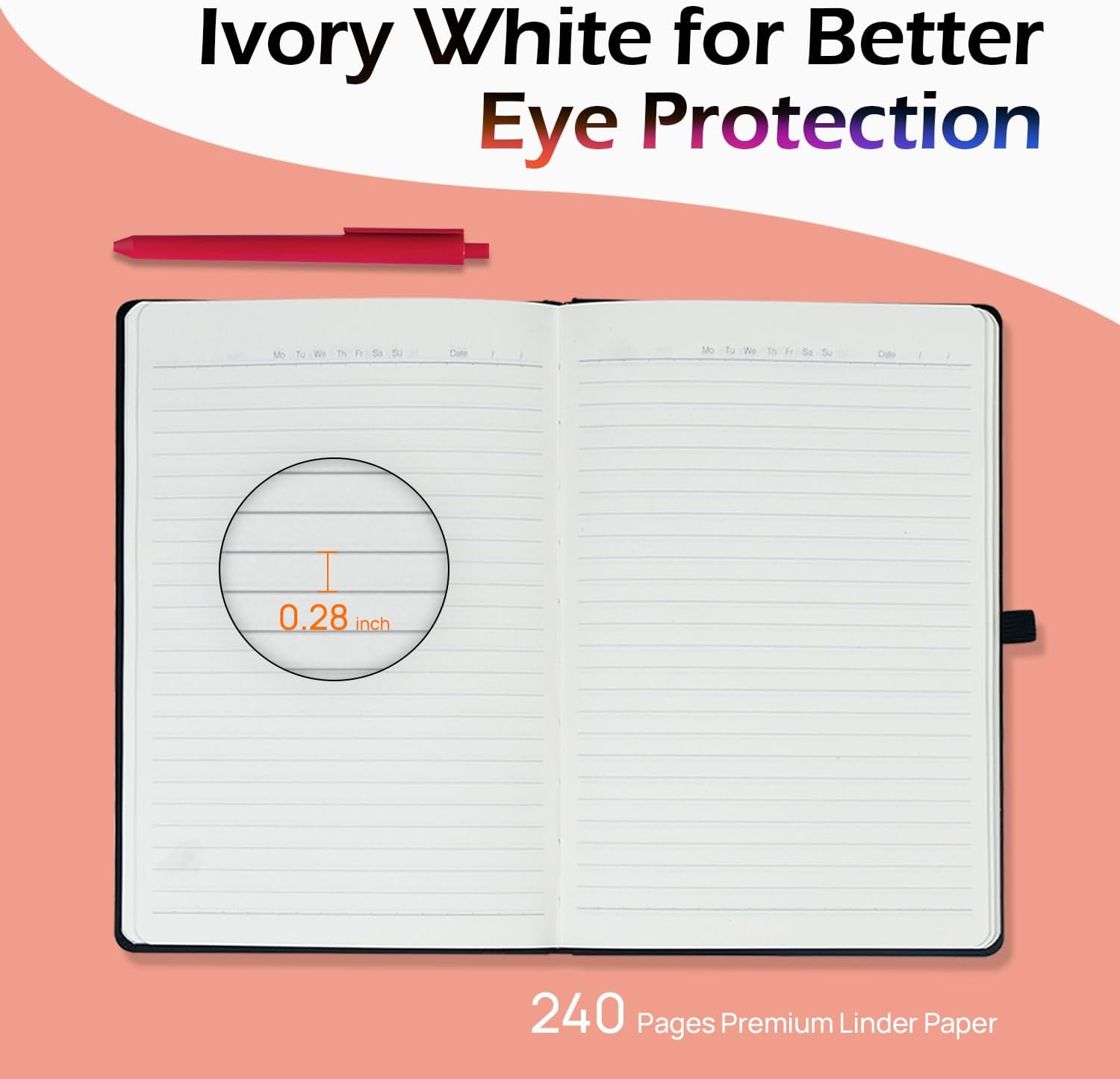- 【Premium Notebook Journal】POPRUN A5 journals are made of high-density hard paper, durable and water-resistant, smooth to much. The size of this notebook is 5.5" x 8.3", lightweight and portable. The thick lined notebook includes 120 sheets/240 pages paper, and line spacing is with college rule 7mm. The classic design style makes the notebooks never goes out of fashion.