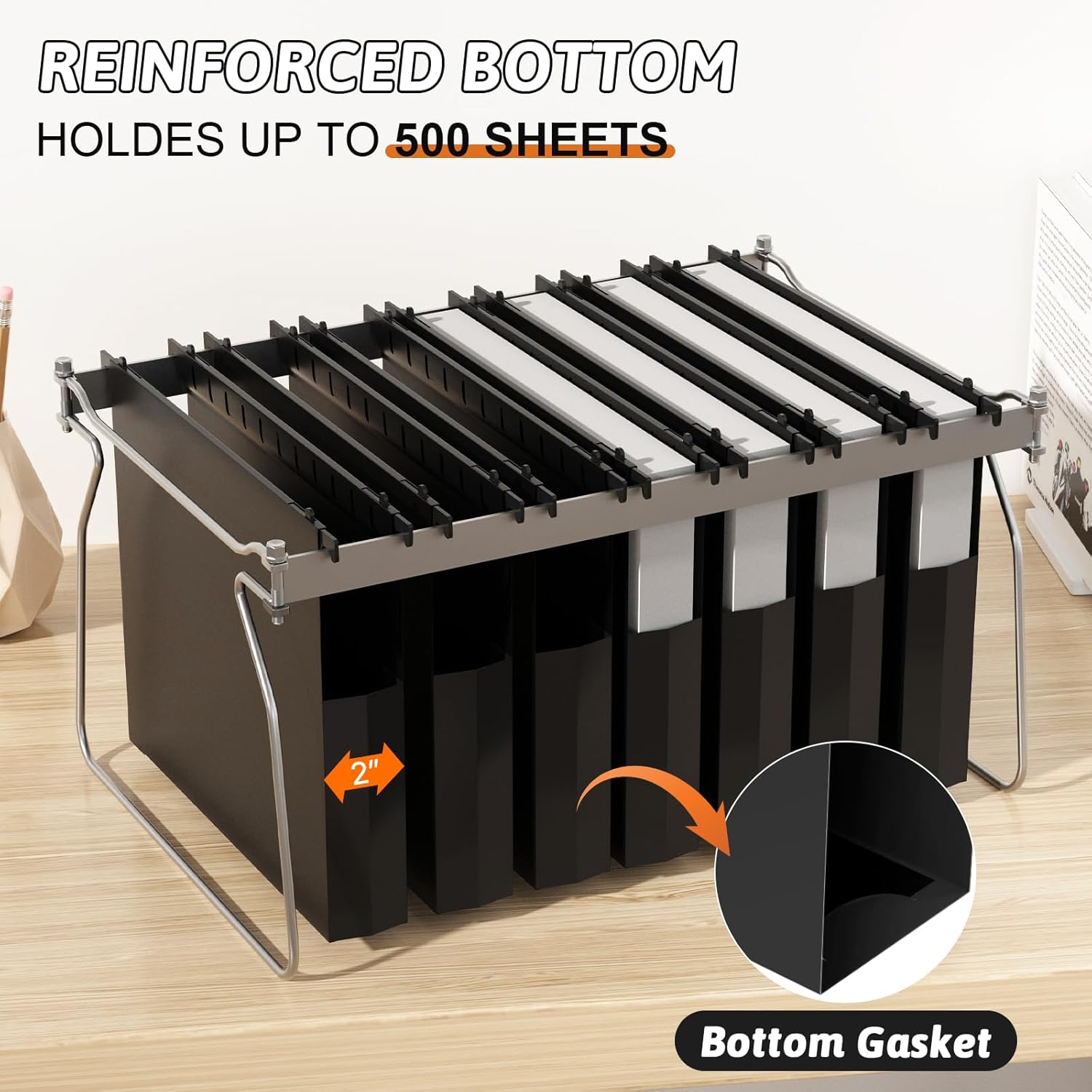 - 【EXTRA CAPACITY & REINFORCED BOTTOM】: Hanging file folders buttom 2" expansion design for up to 500 files at once; includes black plastic plate-reinforced insert for extra support on bottom panel.