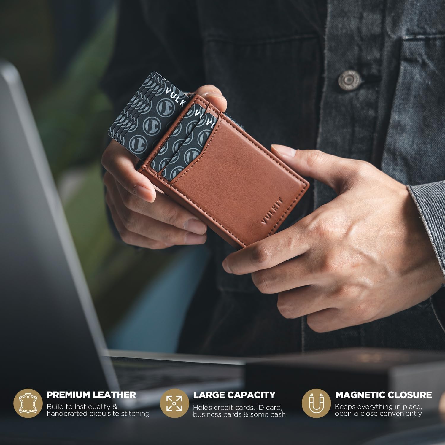 - Large Capacity, Minimalist Design: Design to fit your everyday essentials. It fits easily into your jeans pocket or a lightweight backpack. You can insert 8 to 10 cards (including one visible ID slot) and a small amount of bills as needed.