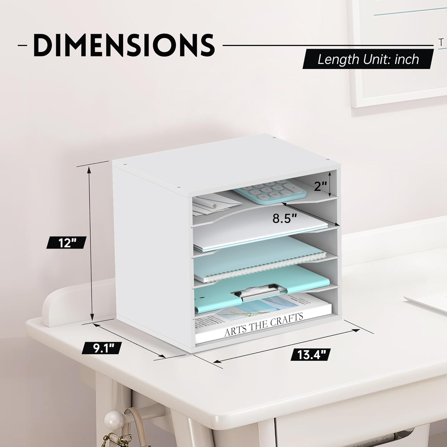 SUPEASY Wood Desk Organizer, 5 Tier Paper File Organizer for Desk, Wooden Desktop Organizer, Paper Letter Literature Mail Sorter, for Office School & Home Organization, White