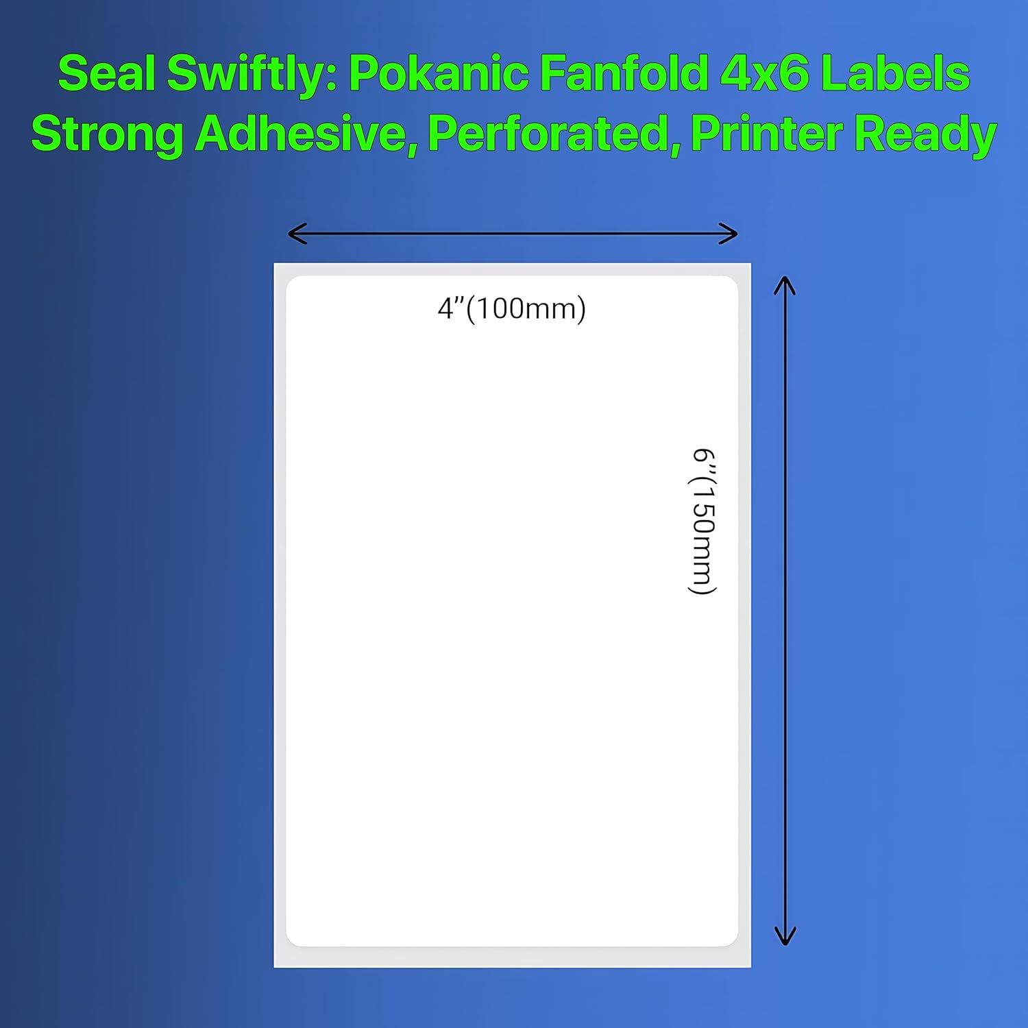 Fanfold [4 x 6 inch] x [3000 Labels] Thermal Stack Direct White Strong Adhesive Perforated Postage Shipping Printer Compatible with Zebra SNBC Epson Rollo (3000 Labels, Fanfold)