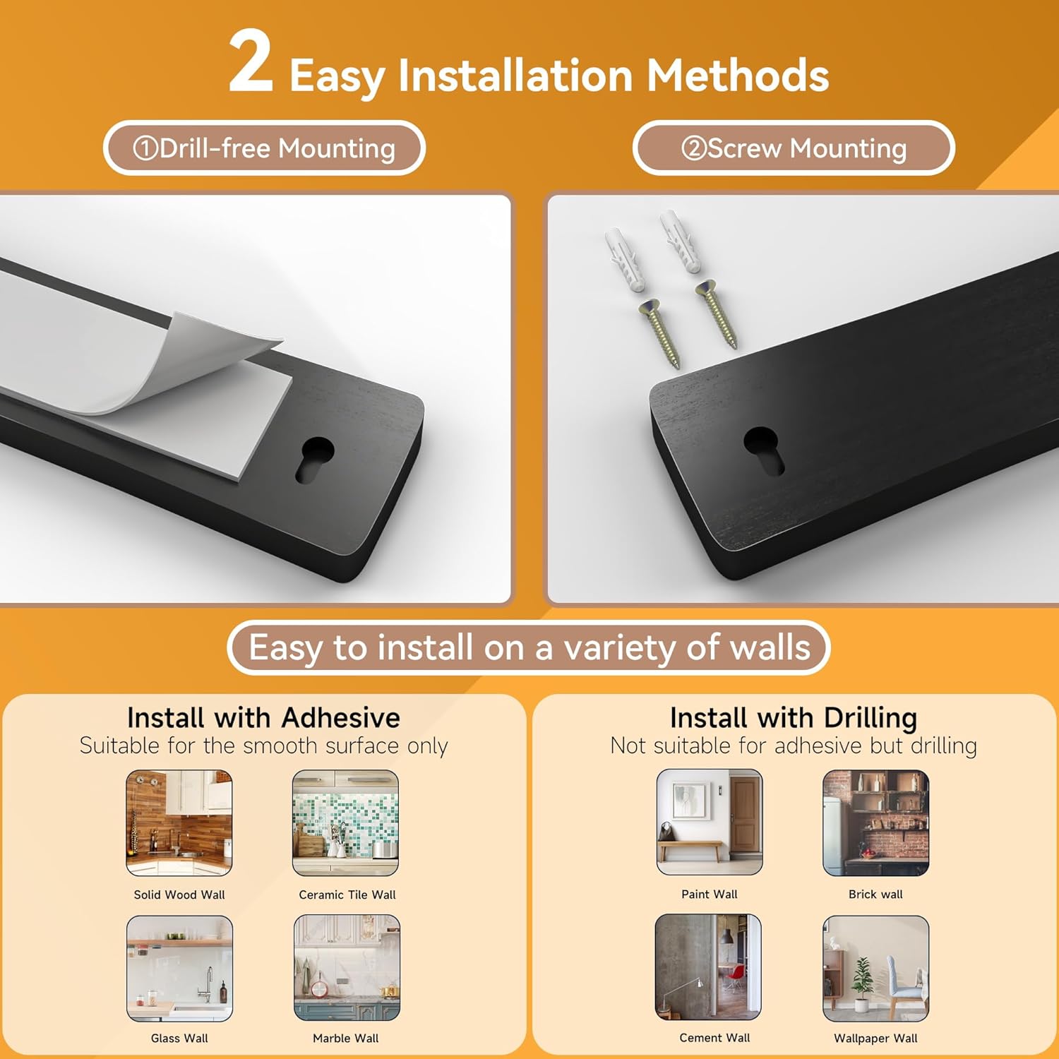 - ใ๐๐ข๐ฆ๐ฉ๐ฅ๐ ๐๐ง๐ฌ๐ญ๐๐ฅ๐ฅ๐๐ญ๐ข๐จ๐งใ2 simple but sturdy methods: no-drill installation and screw installation to meet different requirements; Screw mounting provides a stronger weight capacity and is compatible with various wall types which is ideal for those who want a stable and long-lasting solution; Alternatively, No-drill Mounting makes efficient use of wall space, featuring an enhanced adhesive for increased stability and firmness, and is hassle-free; Comes with detailed instructions