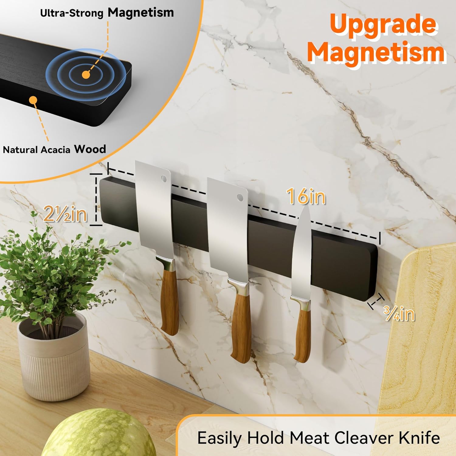 - ใ๐๐ฅ๐ญ๐ซ๐-๐๐ญ๐ซ๐จ๐ง๐ ๐๐๐ ๐ง๐๐ญ๐ข๐ฌ๐ฆใOur magnetic strip for knives is crafted from premium Acacia wood, meticulously processed for outstanding durability yet sturdy construction; Powerful magnets ensure your knives securely adhere to the magnetic knife strip, providing a safe storage solution [[[NOTE:Carbon steel knives only. Not suitable for stainless steel]]]