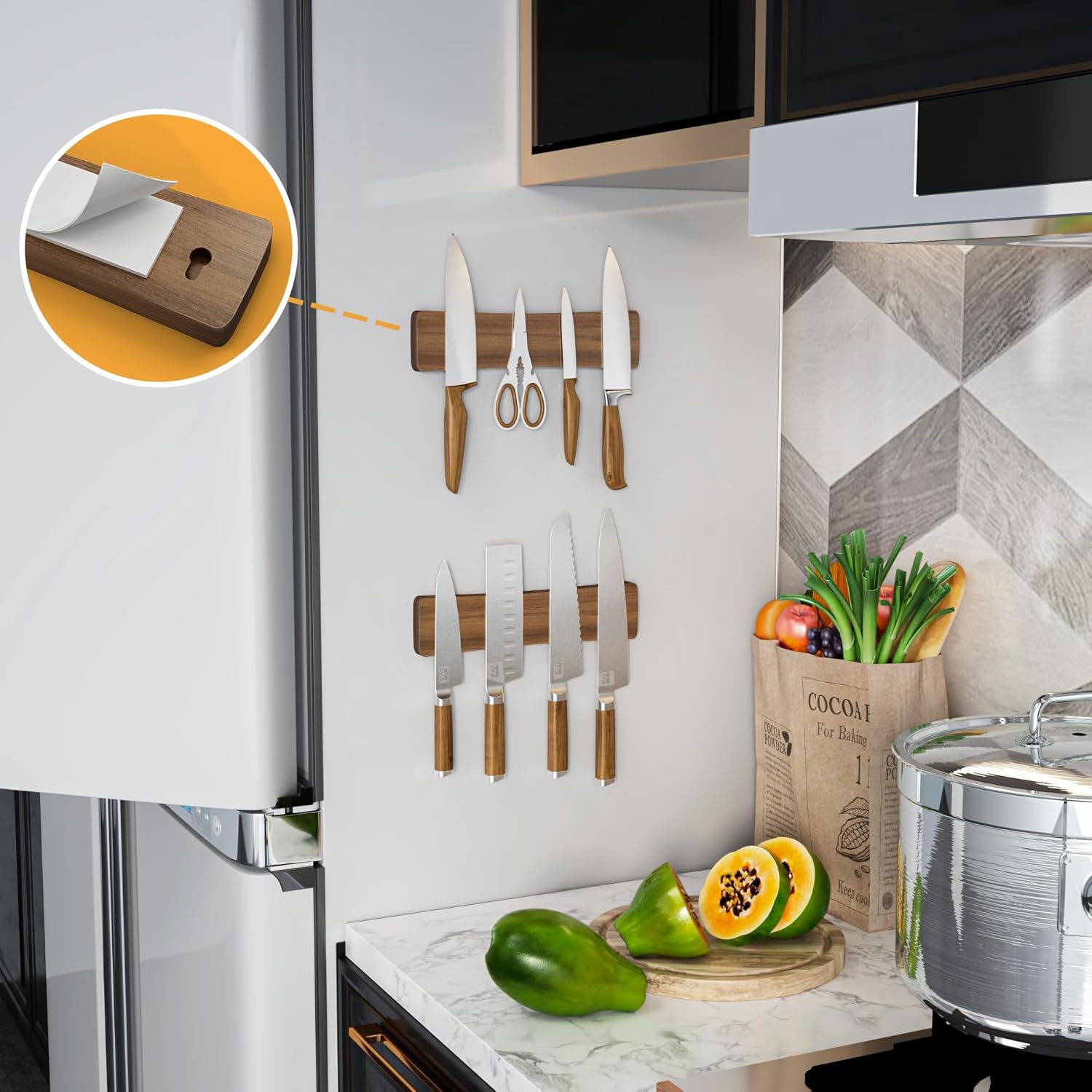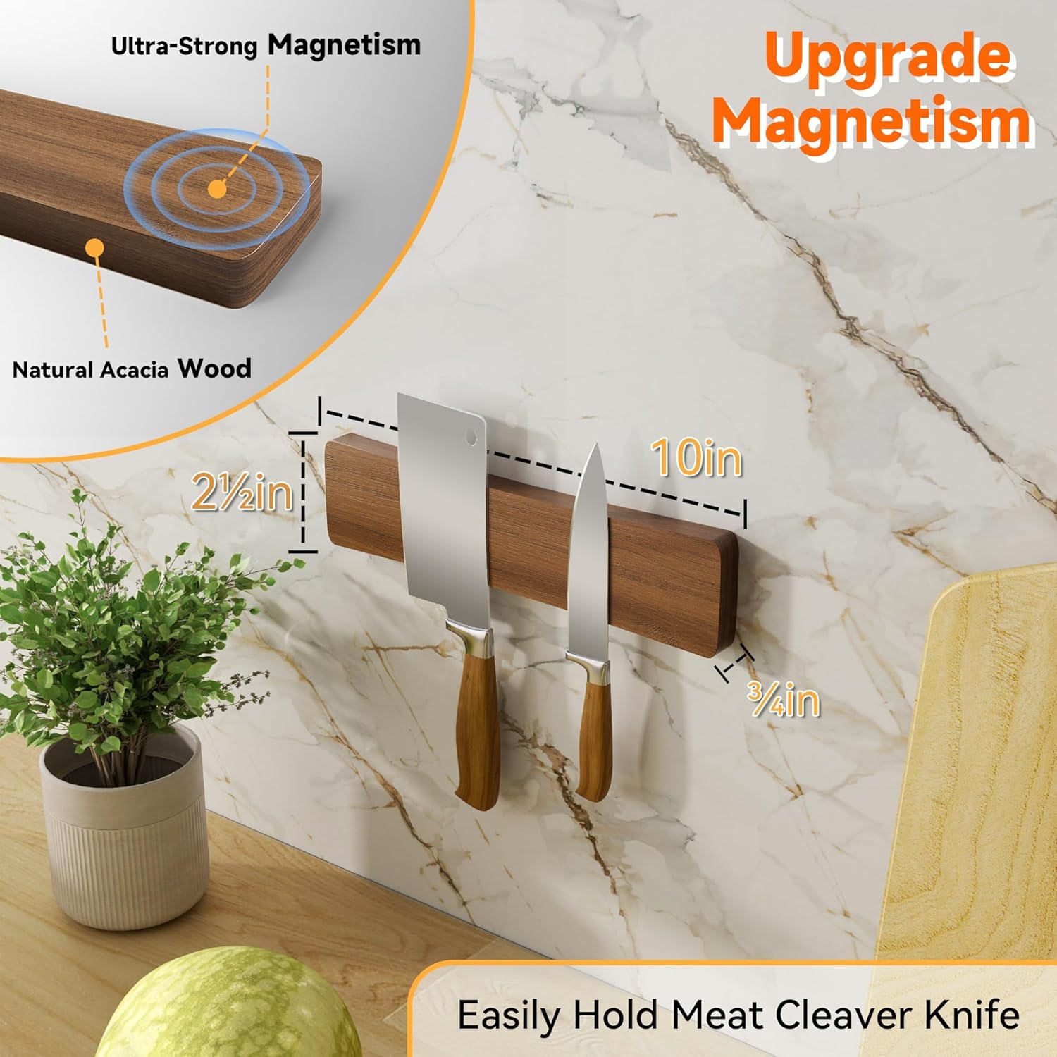 - ใ๐๐ฅ๐ญ๐ซ๐-๐๐ญ๐ซ๐จ๐ง๐ ๐๐๐ ๐ง๐๐ญ๐ข๐ฌ๐ฆใOur magnetic strip for knives is crafted from premium Acacia wood, meticulously processed for outstanding durability yet sturdy construction; Powerful magnets ensure your knives securely adhere to the magnetic knife strip, providing a safe storage solution [[[NOTE:Carbon steel knives only. Not suitable for stainless steel]]]