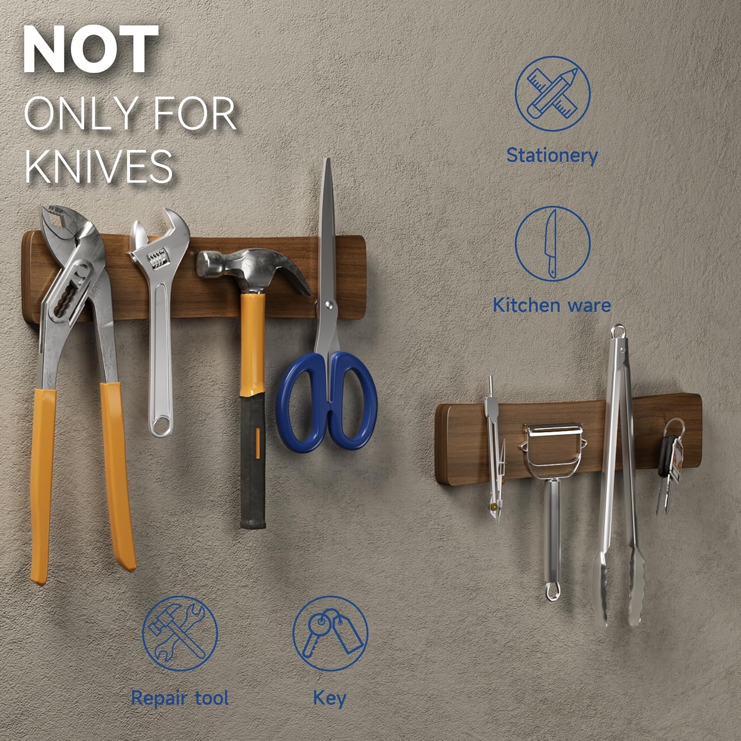 - ใ๐๐ฎ๐ฅ๐ญ๐ข๐ฉ๐ฎ๐ซ๐ฉ๐จ๐ฌ๐ ๐๐๐ ๐ง๐๐ญ๐ข๐ ๐๐๐ซใThe knife magnetic strip serves as a convenient kitchen utensil rack, practical home organizer and stylish art supply holder. It's an ideal magnetic holder for kitchen, utility room, laundry room, garage, and more. Use it to securely store knives, scissors, utensils, keep your tools organized, store small toys, and even keep your keys handy. Additionally, it's an excellent kitchen storage choice for those with boats or RVs