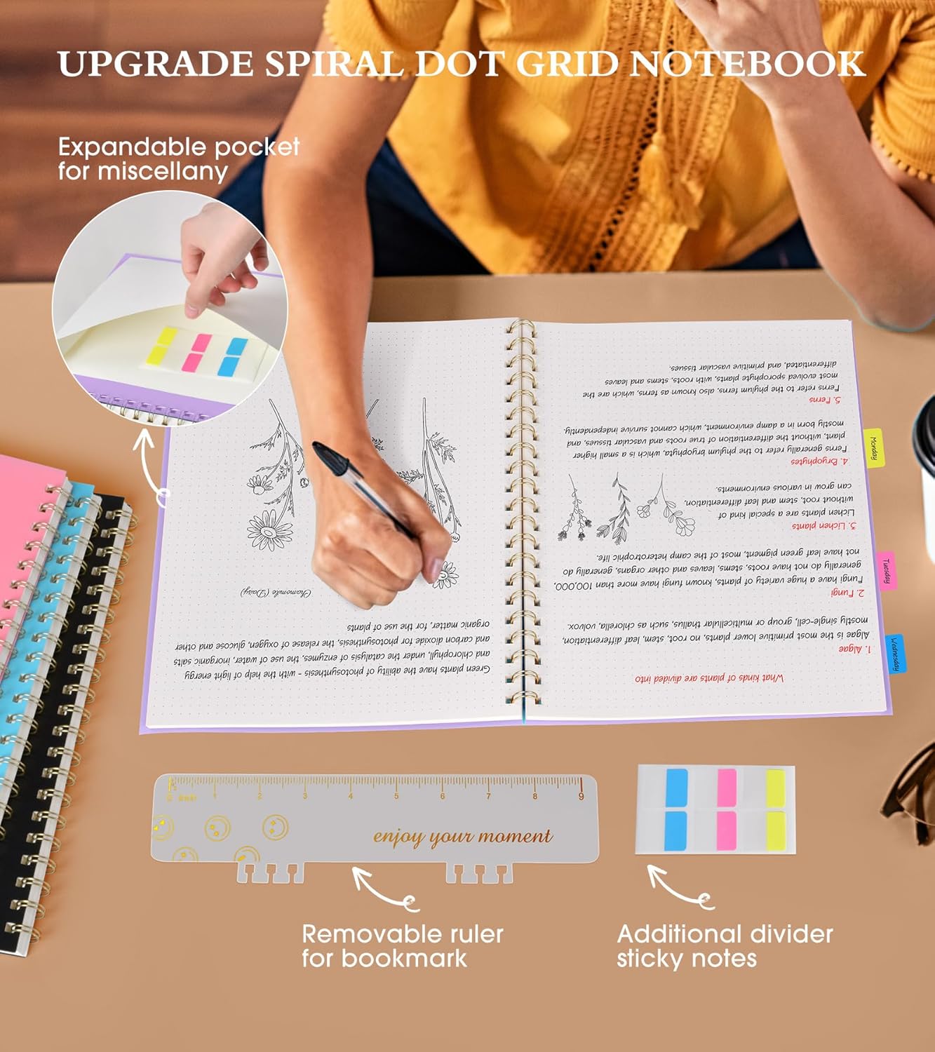 - 【100 GSM Ink-friendly Paper】 Our purple spiral dot grid notebook pages are very thick, which avoids ink bleeding through and ghosting. Suitable for most pen types, such as ballpoint pens, fountain pens. Each dotted journal 55 sheets/110 pages, offering enough space to write in. Allowing you to write on both sides of every page to maximize your usable space. light ivory paper is not dazzling, let you have a comfortable writing experience.