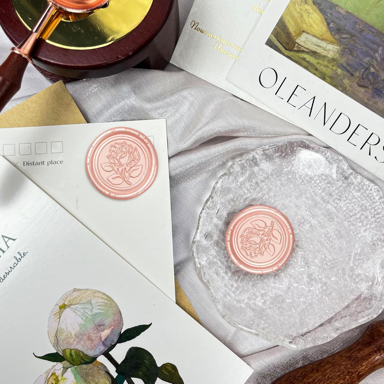 Pink Metal Vintage Rose Style Wax Seal Stickers, 50 Pcs - Waterproof, Self Adhesive, for Wedding Invitations, Envelope, Gift Wrap, Christmas