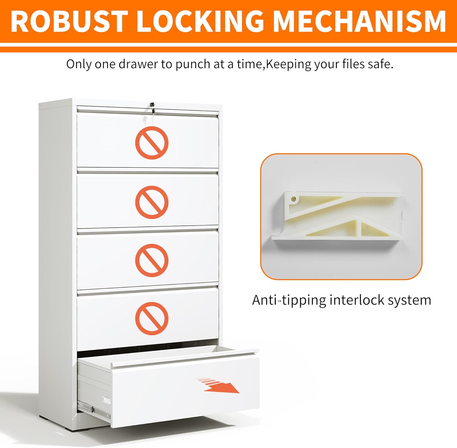 Locking Filing Cabinet with 5 Drawer Heavy Duty Large Metal File Cabinet Home Office Lateral File Cabinets Wide Steel Cabinet for Legal/Letter Size File,Assembly Required