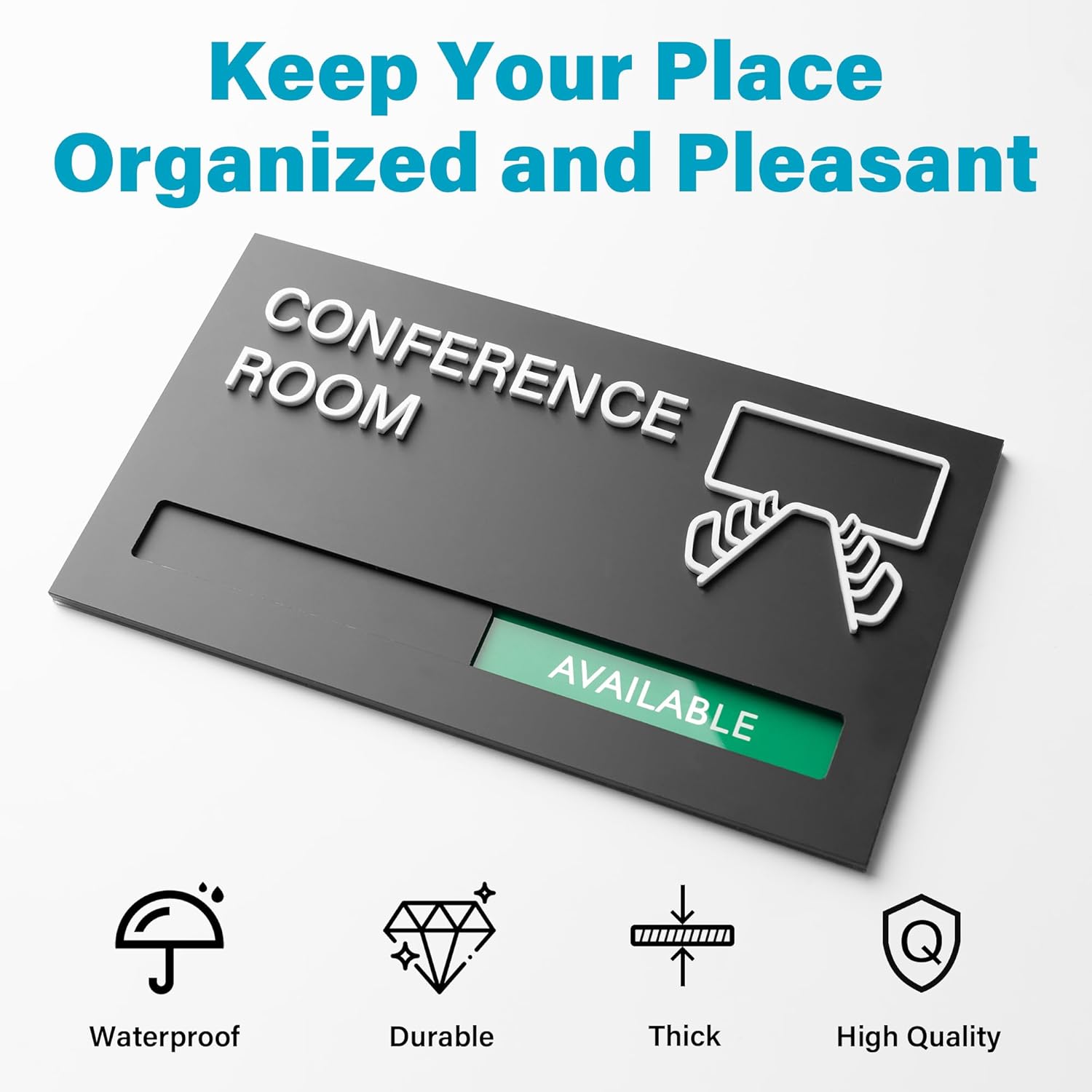 Office Door Signs for Conference Room, Meeting In Progress Door Sign, In Use Available Slider Indicator Tells Whether Room Vacant Or Occupied