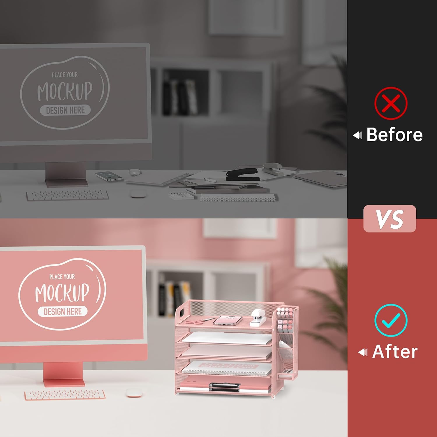 - [5 Tier Large Capacity] Upgraded SUPEASY pink desk organizer is 4+1 tier paper tray organizer. This pink paper organizer has 4 detachable trays which is perfect for holding letters, A4 paper, books, bills, magazines, mails, folders, notebooks and so on. The desk organizers can fully take advantage of your vertical space and keep your desktop clear and tidy.