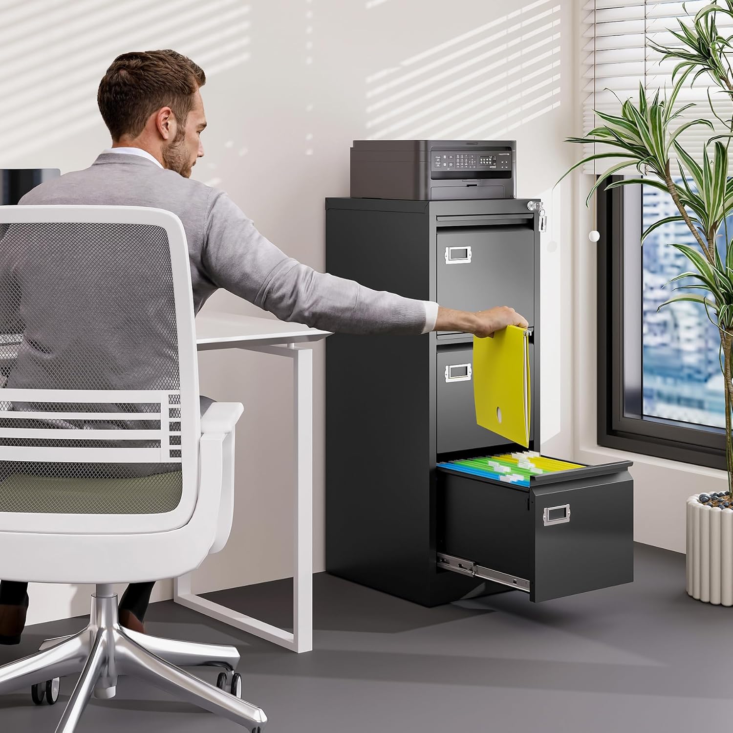 - 【HUMANIZED DESIGN】The steel ball bearing full extension drawer slide is noiseless, will not affect the work of others, and always maintain a quiet environment. The extra-long drawer handle design of the file cabinet makes it more convenient to open the drawer