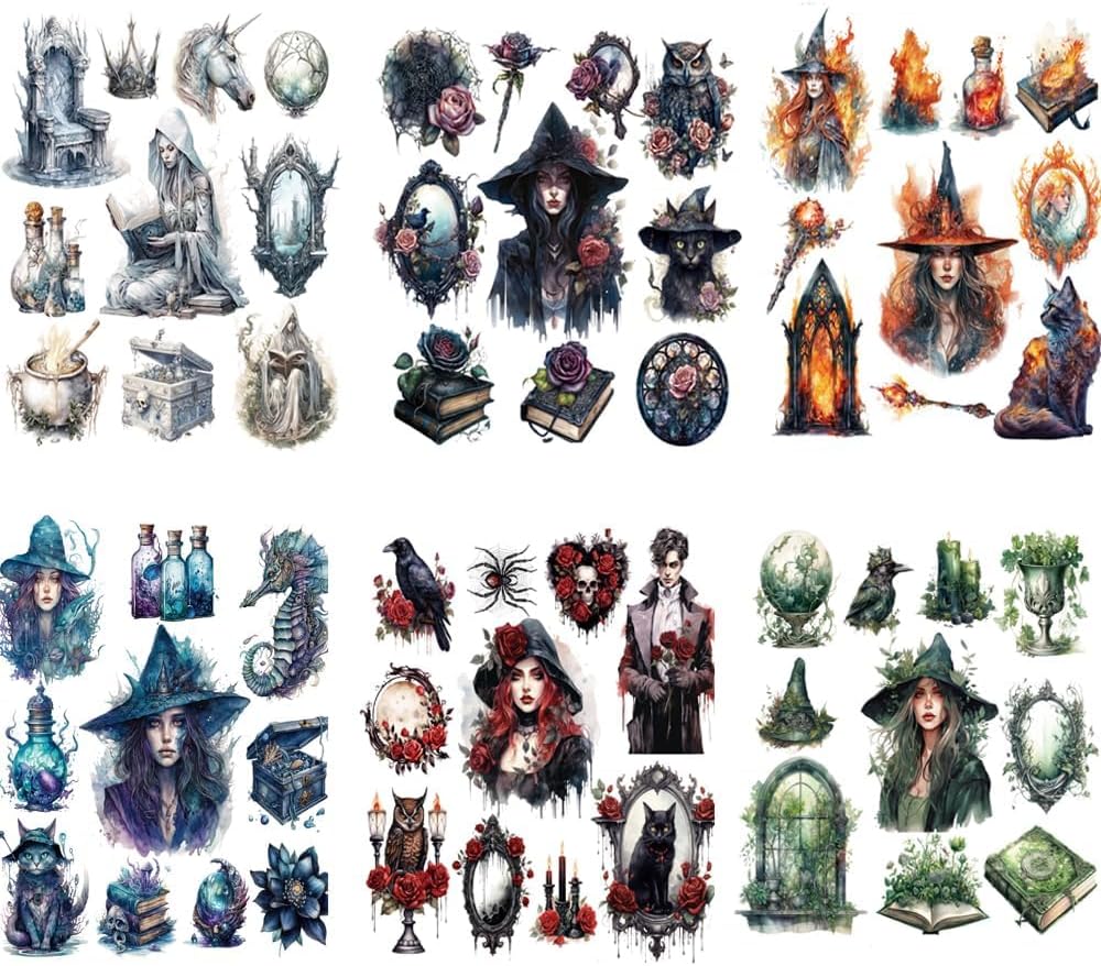 Alideco 120pcs Scrapbook Stickers Witch Girls Tarot People Scrapbooking Junk Journal Crafts Embelishment Decoration Diary Stickers (getenvwu)