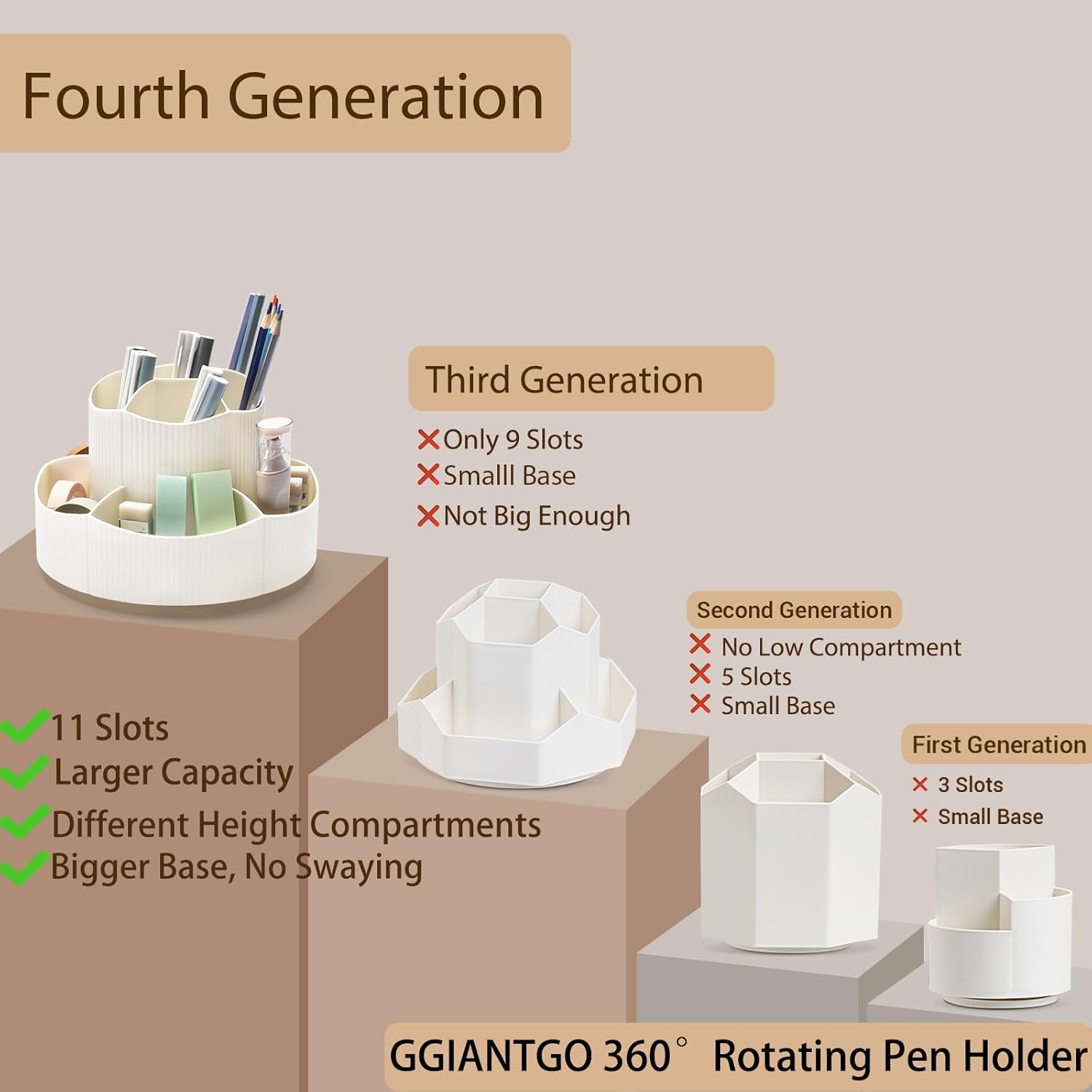 Rotating Desk Organizer, 360° Rotating Pencil Pen Holder for Desk, Desk Organizers and Accessories with 11 Slots Pencil Organizer, Art Supply Storage Box Caddy for Office (Beige)