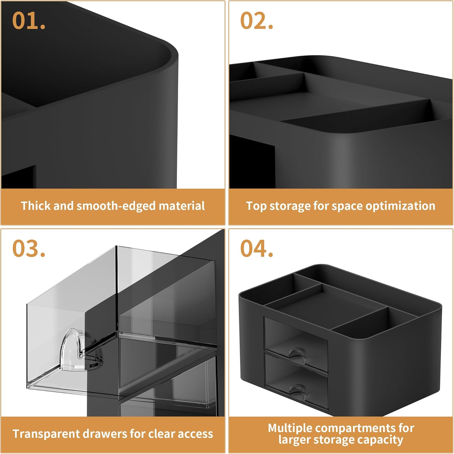 Marbrasse Pen Organizer with 2 Drawer, Multi-Functional Pencil Holder for Desk, Desk Organizers and Accessories with 5 Compartments + Drawer for Office Art Supplies (Black)
