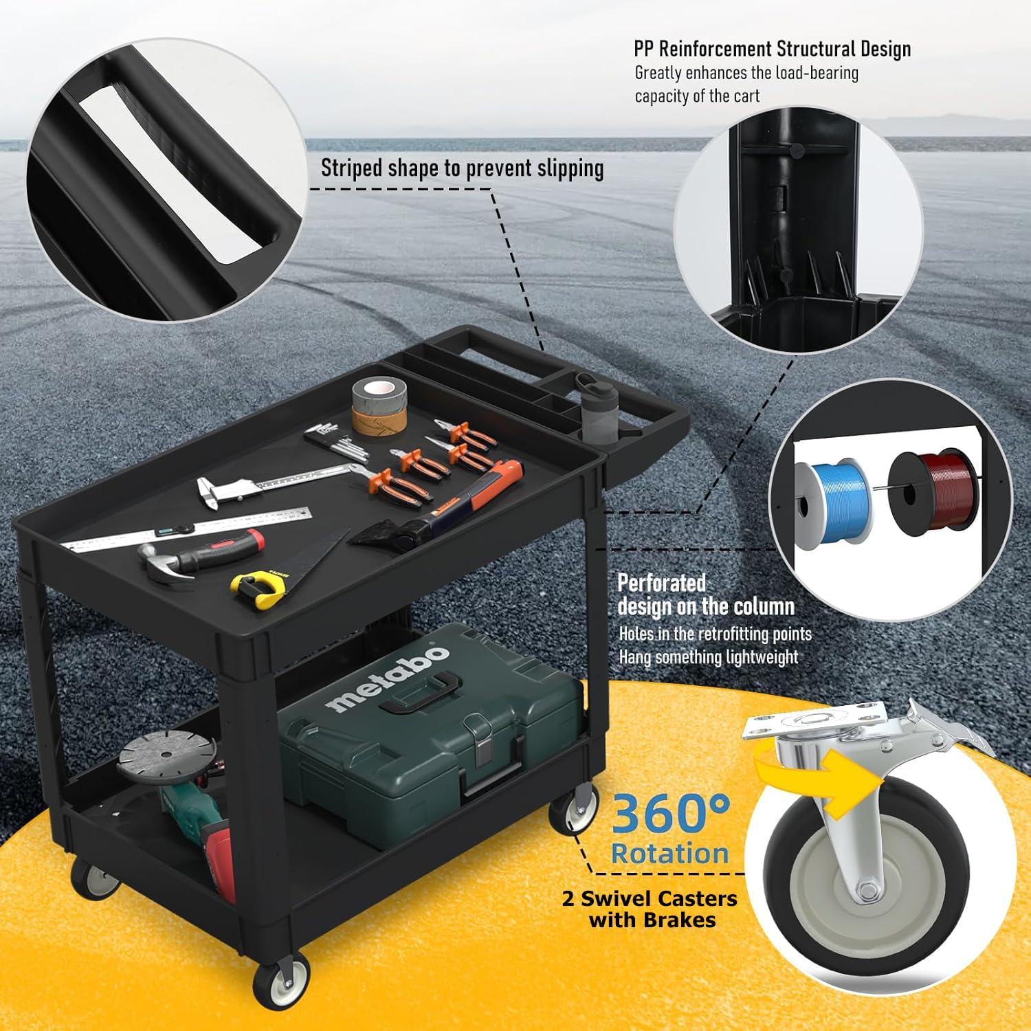 - ✨【HIGH-QUALITY MATERIALS】: This cart is made from high-strength, industrial-grade polypropylene to resist chipping or denting. It is also waterproof and rust-proof and easy to clean, so it is suitable for indoor and outdoor use.